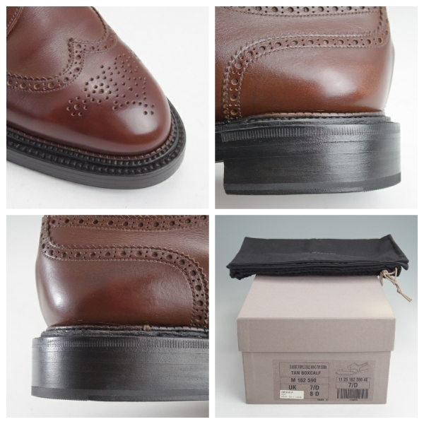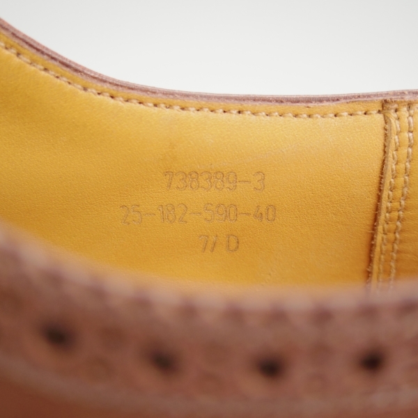 ■-------------------------------------- 【サイズ別一覧】 ご自身のサイズに近いリストからお選びください。合いそうな商品のみを確認することが可能です。 ■サイズ6前後、6以下 https://sellinglist.auctions.yahoo.co.jp/studio.CBR/6+5+4 ■サイズ7前後 https://sellinglist.auctions.yahoo.co.jp/studio.CBR/7 ■サイズ8前後 https://sellinglist.auctions.yahoo.co.jp/studio.CBR/8 ■サイズ9前後、9以上 https://sellinglist.auctions.yahoo.co.jp/studio.CBR/9+10+11X ■レディース https://sellinglist.auctions.yahoo.co.jp/studio.CBR/レディース ■-------------------------------------- 【ブランド】J.M.Weston/ジェイ・エム・ウエストン 【モデル】590 【ラスト】25 【サイズ】7.5D 【アウトソール】長さ30.5cm×幅11.6cm 【カラー】TAN/タン/茶 【素材】ボックスカーフ 【ソール】レザーソール 【付属品】保存袋、箱 ■-------------------------------------- 【分類】40(店舗用番号となり、商品スペックとは関係ありません) ■-------------------------------------- ・現行定価¥275,000-、J.M.ウエストンのトリプルソールダービー/590となります。 ・アッパーには高級靴特有の自然な光沢感があり、丁寧にケアをされながら使用をされていた印象です。 またインソールのロゴも目視可能、ソール本体はオリジナル状態かつ、ハーフラバーで保護をされている為、程度も良好です。全体的に見て程度の申し分ない状態のお品物ですので、実際の使用歴はそこまで長くないものと思われます。尚、ヒールはレザーでレストア済みとなります。 ☆使用による傷、汚れ、色むら等があります。使用する上で大きく支障が出るような傷みはありませんが、以上了解の上ご購入ください。 ☆別注商品の場合ブランド、ショップロゴのみがソックシートに印字されている場合がございます。 ☆付属品に関して記載がない場合は本体のみとなります。 ■-------------------------------------- | ||||