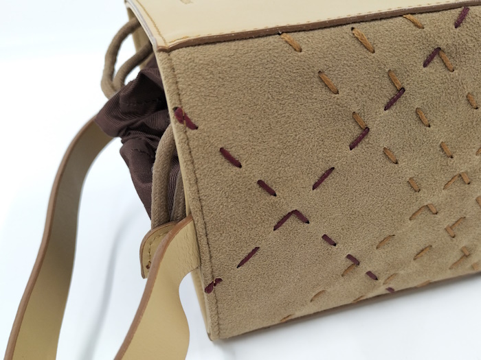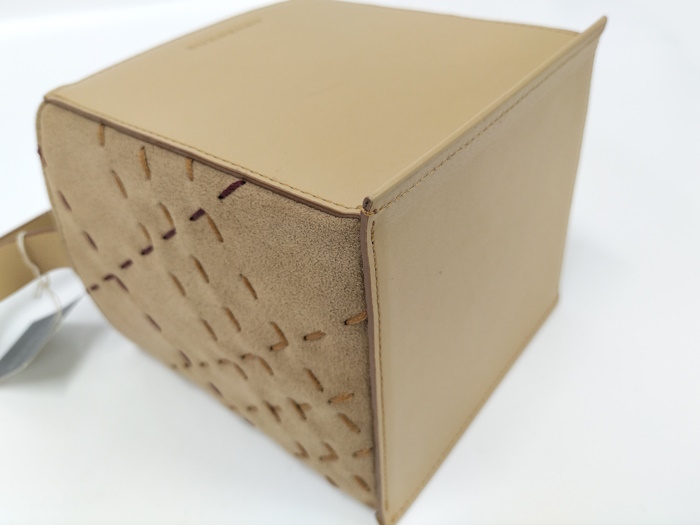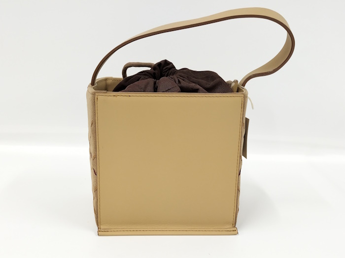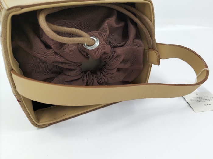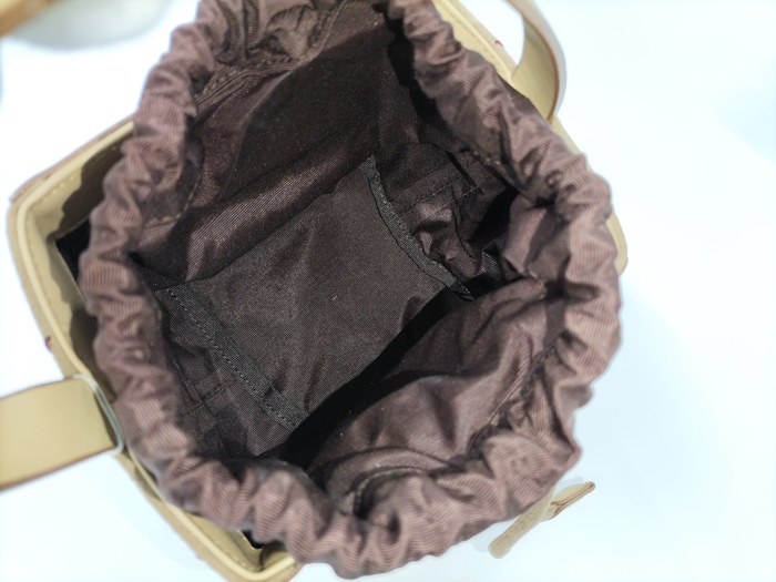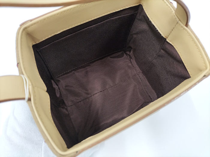 | ◆商品情報 | ・カラー:ベージュ系 ・素材/ライン:レザー ・サイズ:最大約 W11×H13×D13(cm) ・内バッグサイズ:最大約 W12×H17×D10(cm) ※多少の誤差はご了承下さい。 ・内側:オープンポケット×1 |
