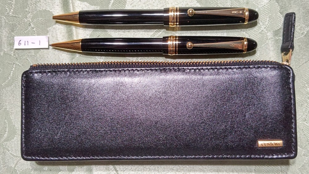 611-1 パイロット カスタム 74 ボールペン(回転式リフィルはBRFN-30) & シャープペンシル(ノック式トップチャック方式)筆記確認 CUSTOMロゴ入り専用本革ペンケース入り