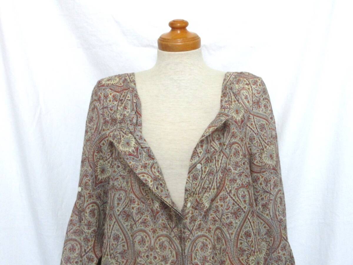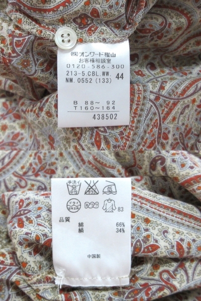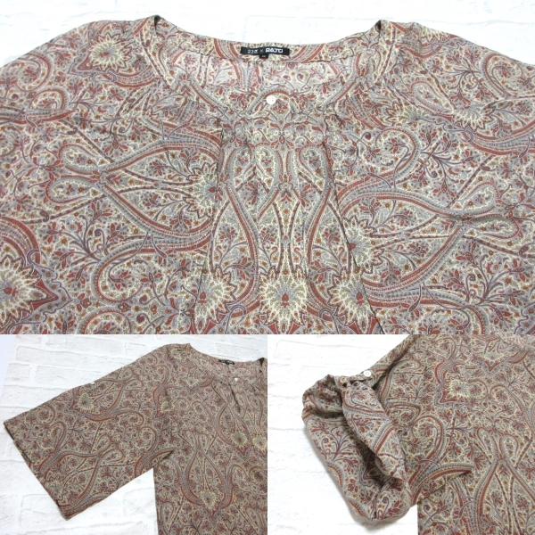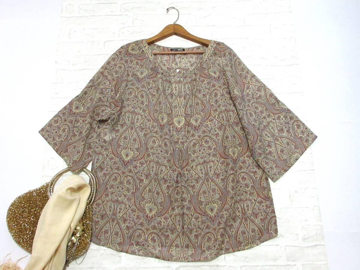 ペイズリープリントウォッシャブルコットンシルクブラウスです。 | ||