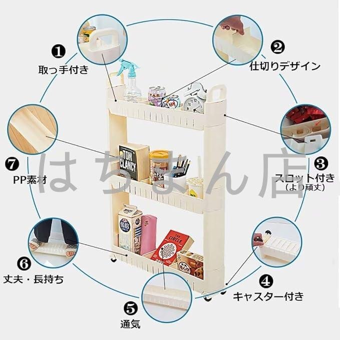 キッチンワゴン キッチンラック 3段 幅10cm 隙間収納 収納ラック キャスター付 大容量 おしゃれ スリム シンプル