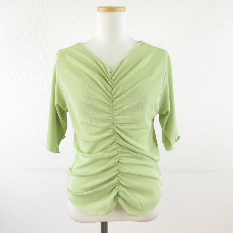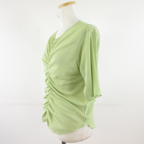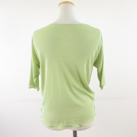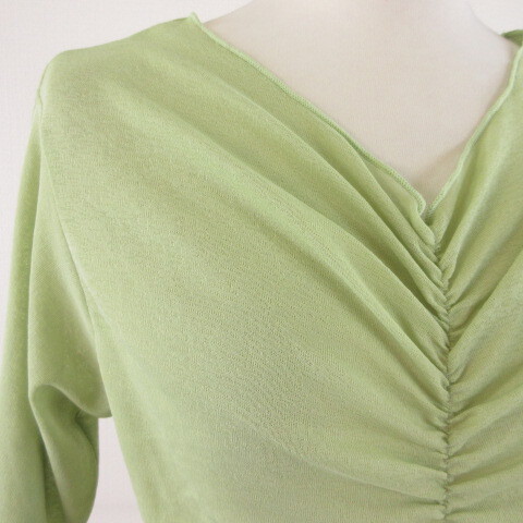 シアーカットソー 五分袖 緑 L *T679 レディース