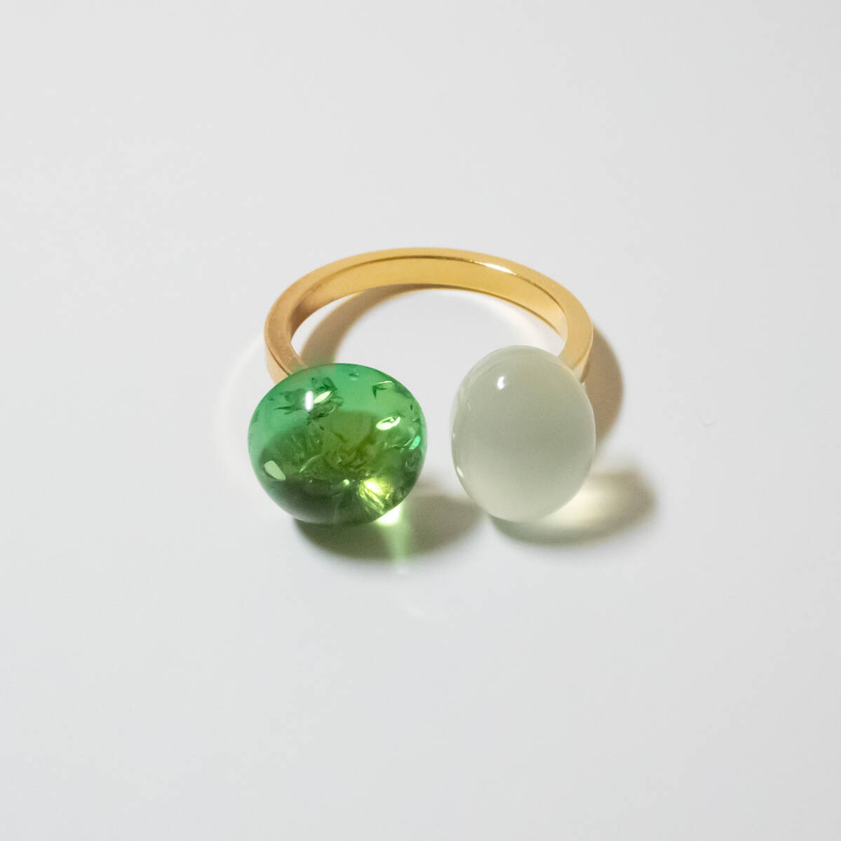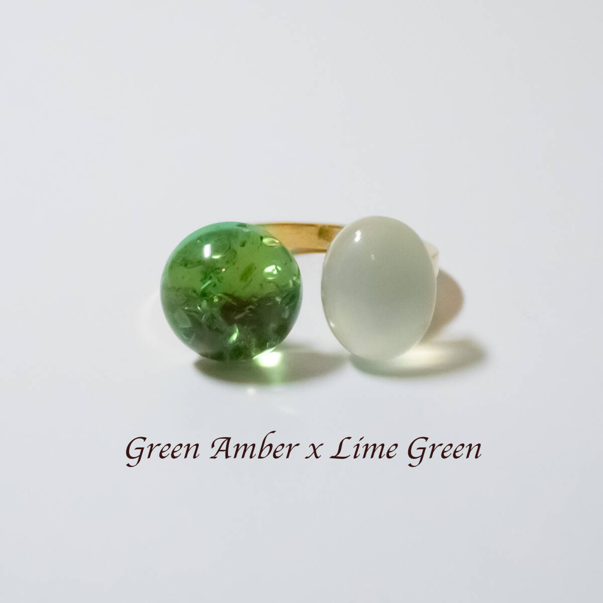 天然石 グリーンアンバー×ライムグリーンカルセドニー フォークリング【フリーサイズ】ゴールド