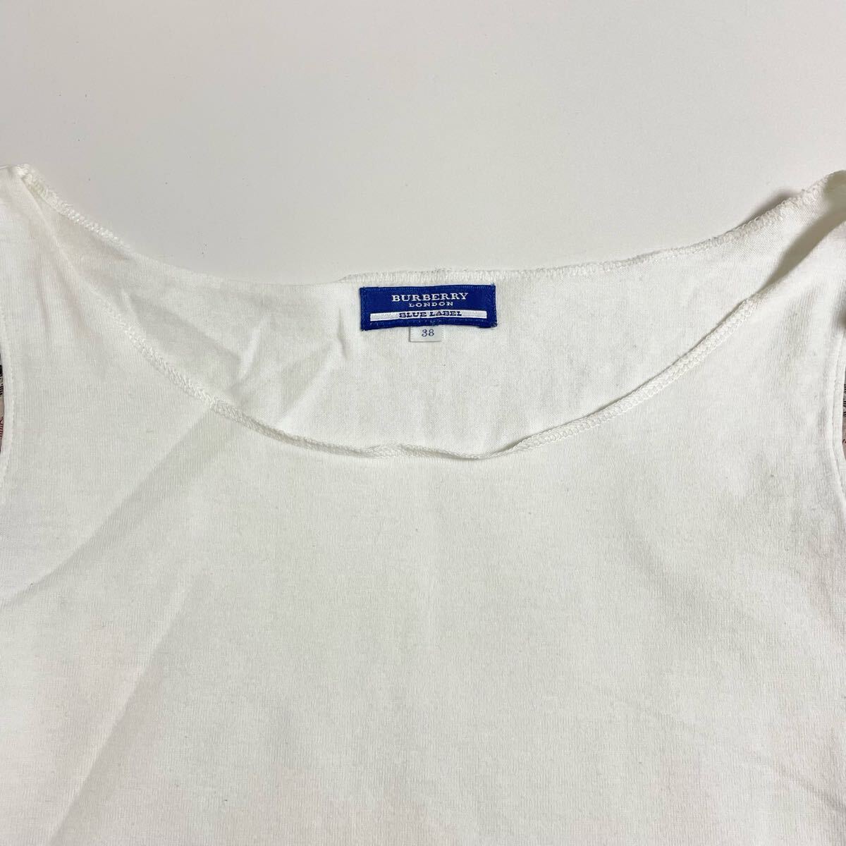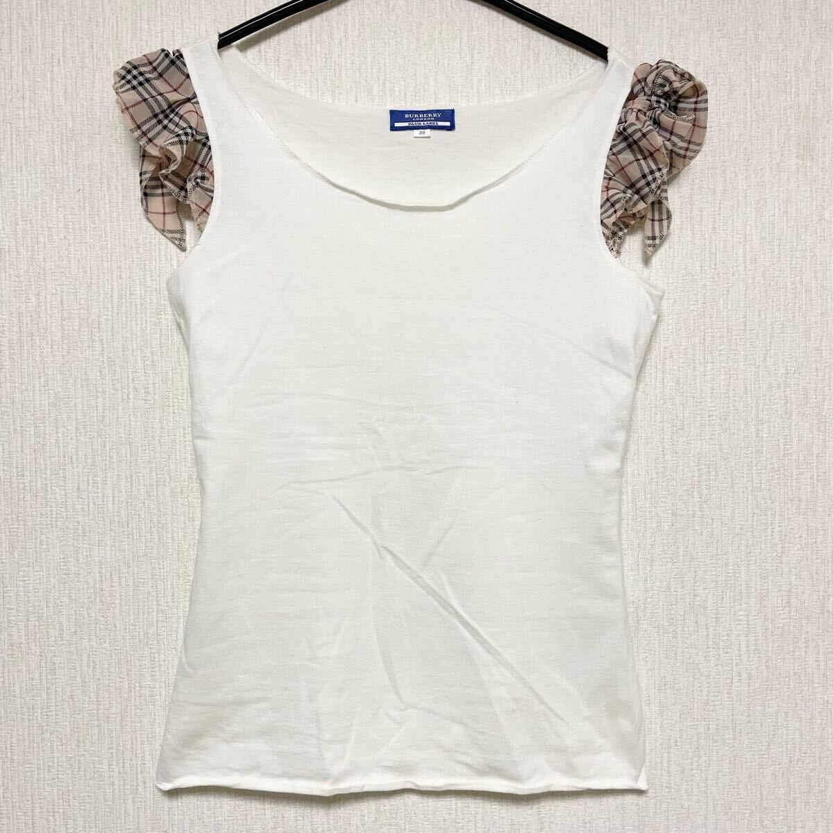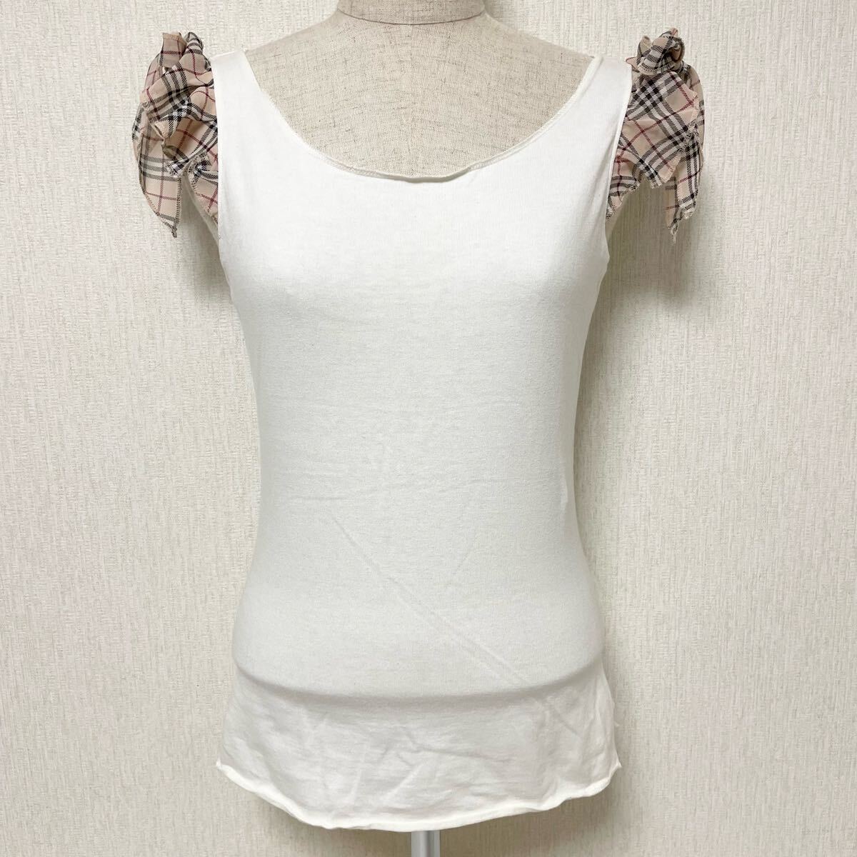 即決☆BURBERRY バーバリー ブルーレーベル フリル リボン ノバチェック タンクトップ ホワイト 38 M