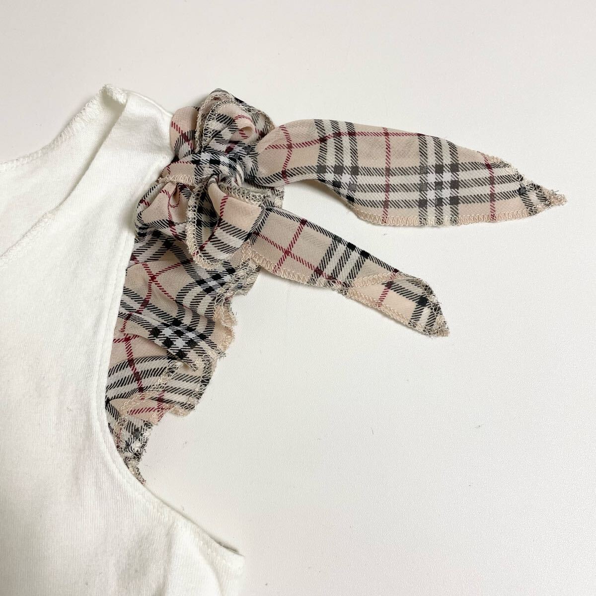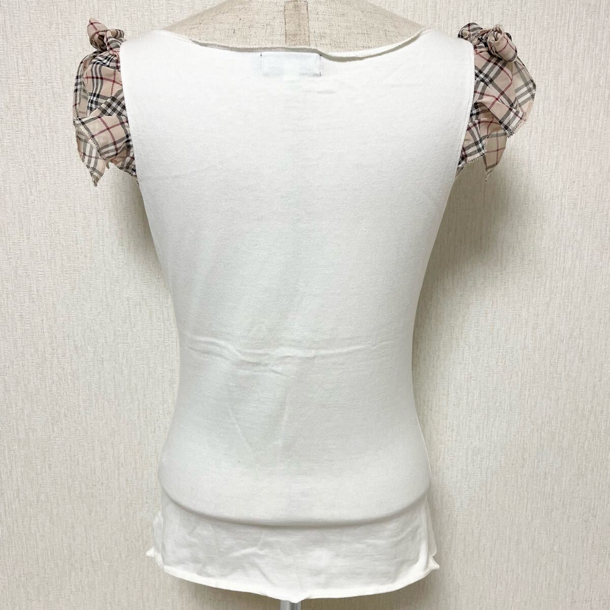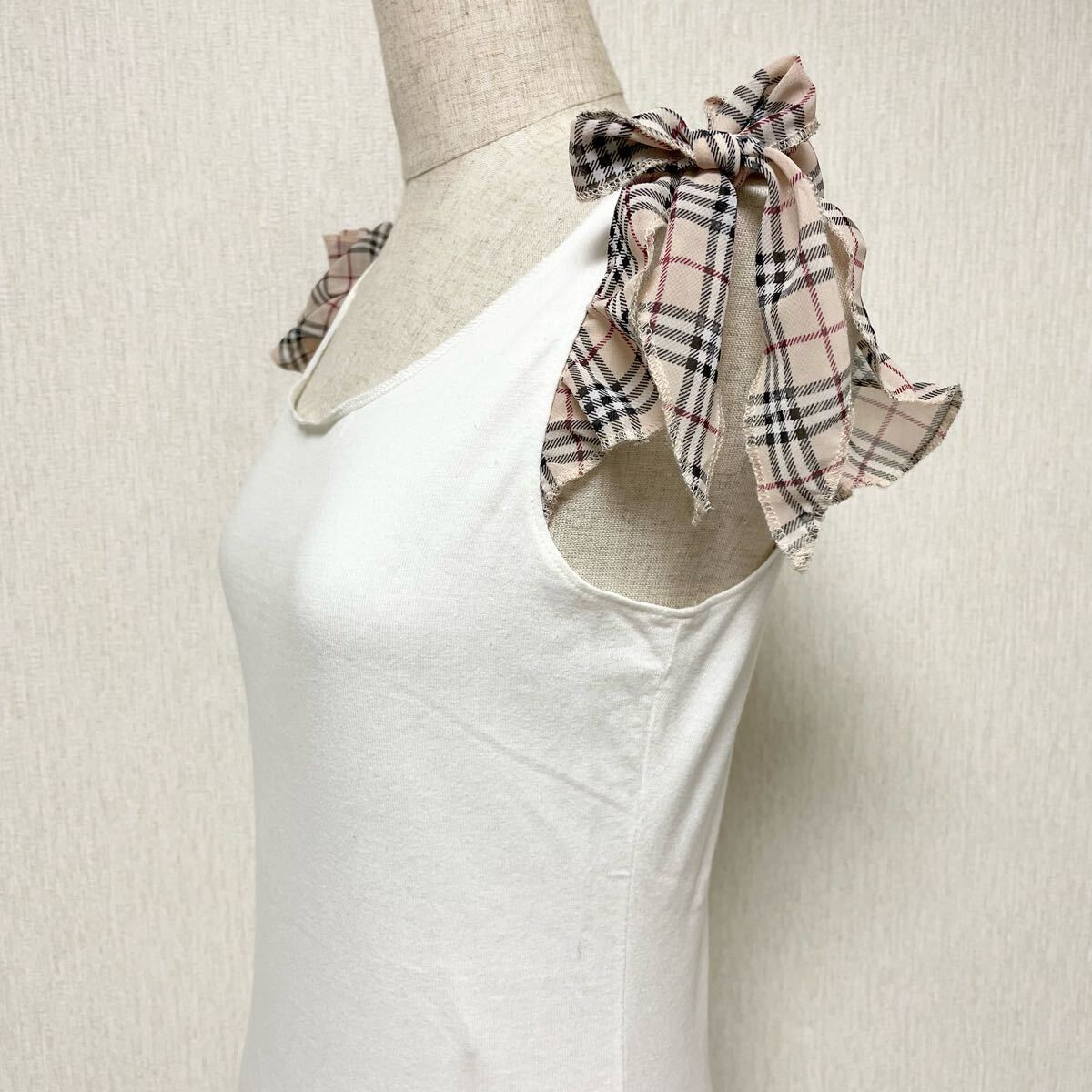 即決☆BURBERRY バーバリー ブルーレーベル フリル リボン ノバチェック タンクトップ ホワイト 38 M