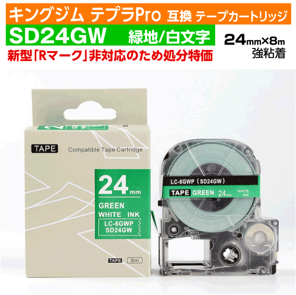 【数量限定セール】キングジム テプラPro用 互換 テープカートリッジ 旧型 SD24GW〔SD24Gの強粘着〕24mm幅 緑地 白文字 グリーン ホワイト