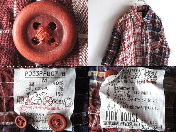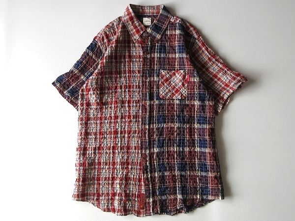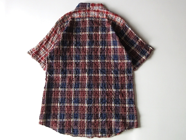 ネコポス対応 Karl Helmut カールヘルム ロゴピスネーム シワ加工 ストレッチ コットン 切替 チェックシャツ M シアサッカー ピンクハウス