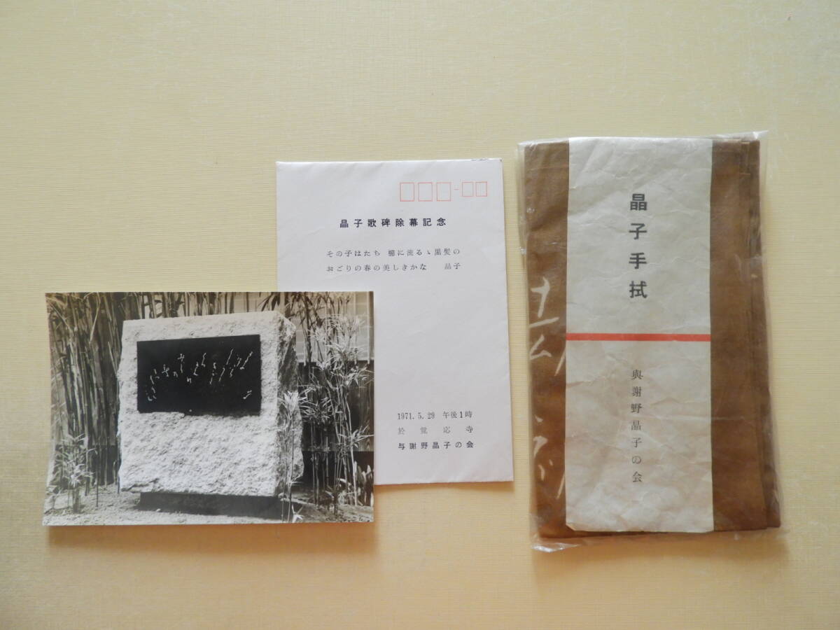 ★与謝野晶子 歌碑序幕記念 絵葉書・封筒 手ぬぐい 1971年 覚応寺 与謝野晶子の会