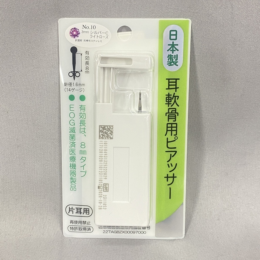 新品未開封 未使用 耳軟骨用 ピアッサー 3mm シルバーC ライトローズ 医療用ステンレス 14ゲージ 日本製 ③
