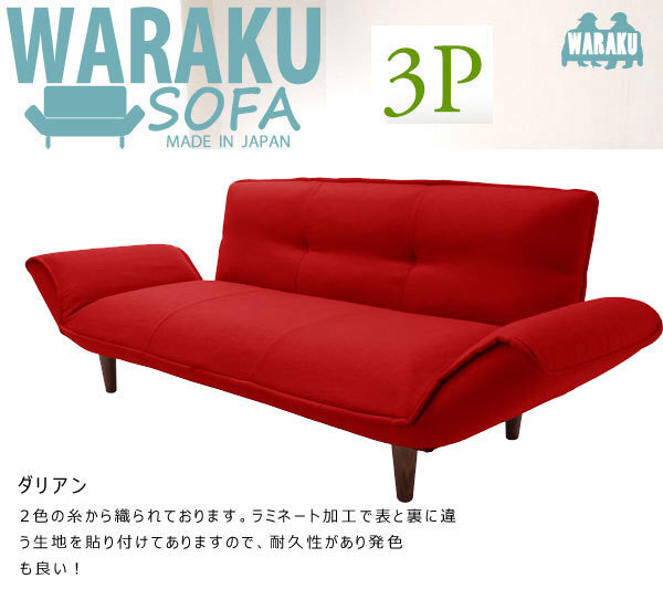 大人気のカウチソファーシリーズに3人掛けタイプが登場! 品質に自信ありの日本製。 背・肘部は5段階リクライニング。 座面に内部にポケットコイルを採用。 程良いクッション製とヘタリにくい構造です。 *発送に1週間ほどかかります (稀に生地欠品の為、長期おまちいただく場合がございます) | ||