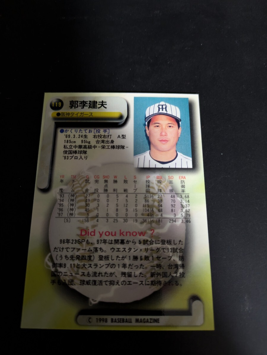 即決★BBM1998 阪神タイガース 郭李建夫 台湾