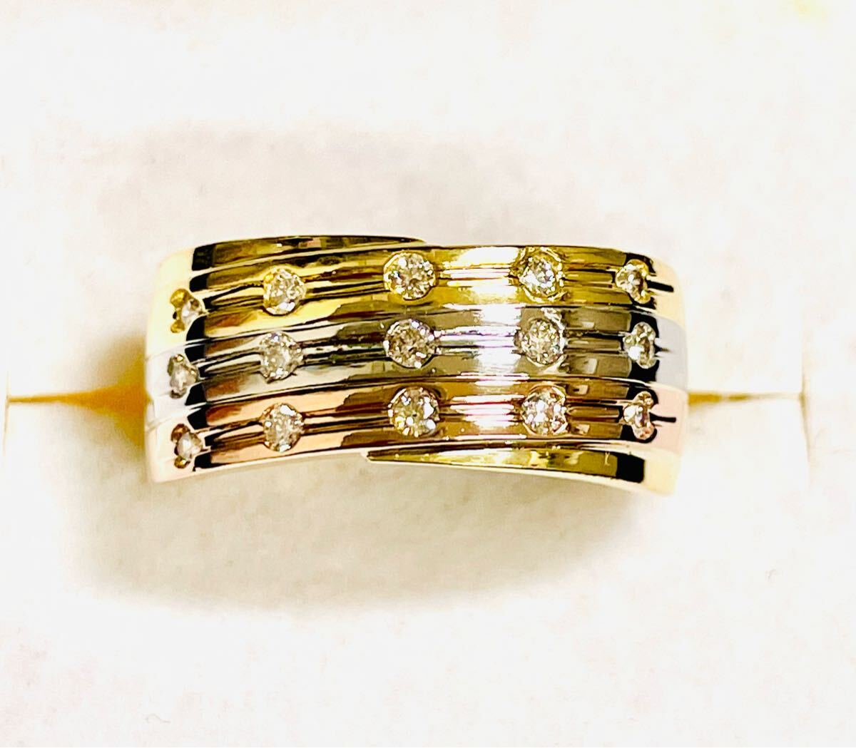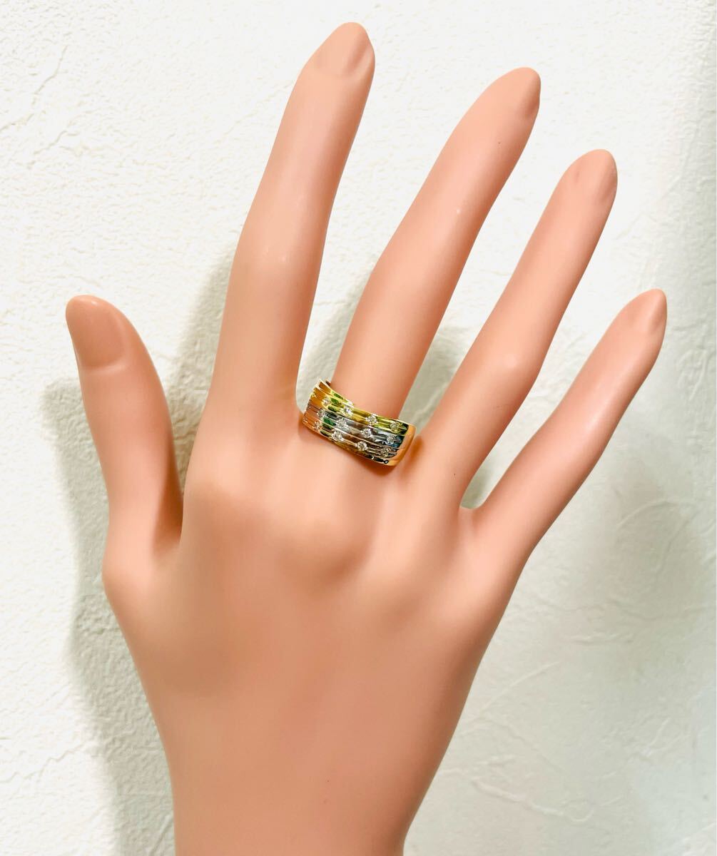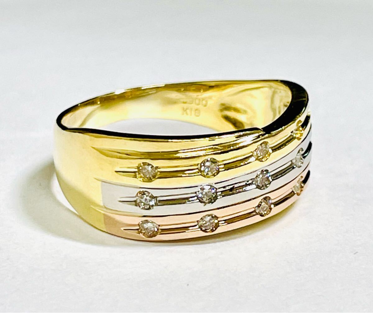 こちらは、K18YG/PG/Pt900台にダイヤ15石付きデザインリングです。