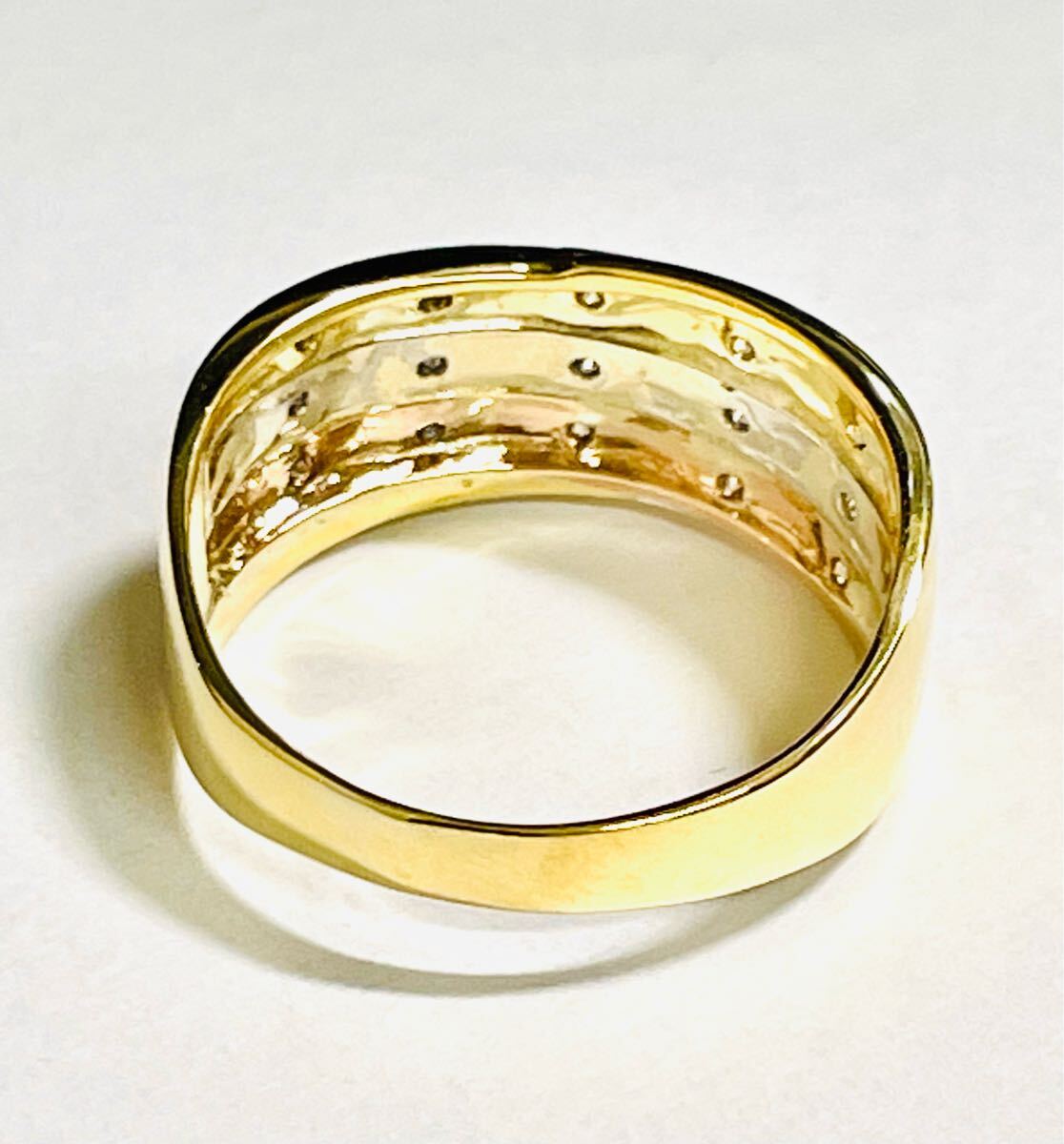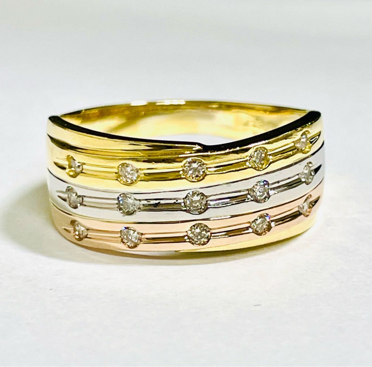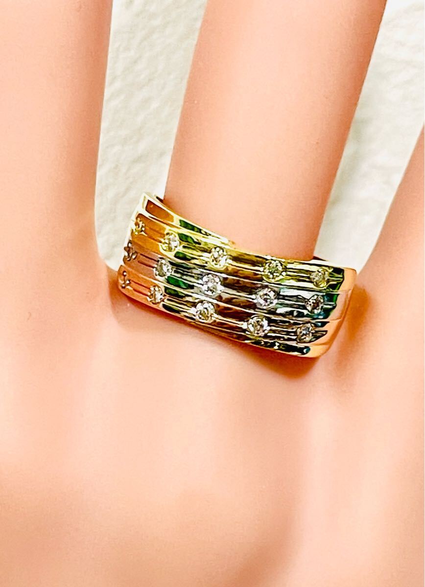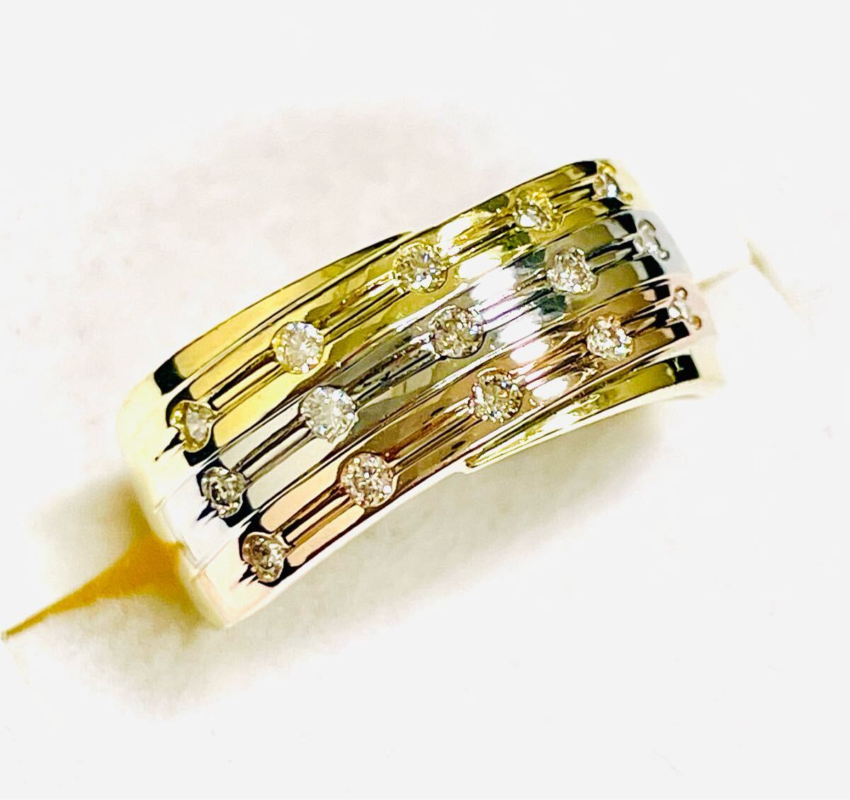 こちらは、K18YG/PG/Pt900台にダイヤ15石付きデザインリングです。
