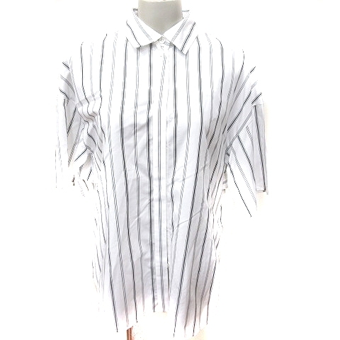 未使用品 アイシービー iCB シャツ ブラウス 五分袖 ストライプ 4 白 ホワイト /RT ●RY レディース
