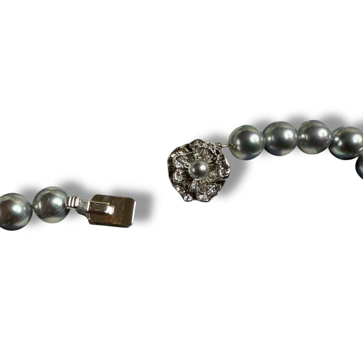 パールネックレスが入荷致しました。ブラックライト反応あり。高価な商品なだけあり上質なシルバーグレーパールを使用し王道デザインでスタイリッシュに仕上がったアイテムです。大活躍するオススメの商品です。ぜひこの機会に!