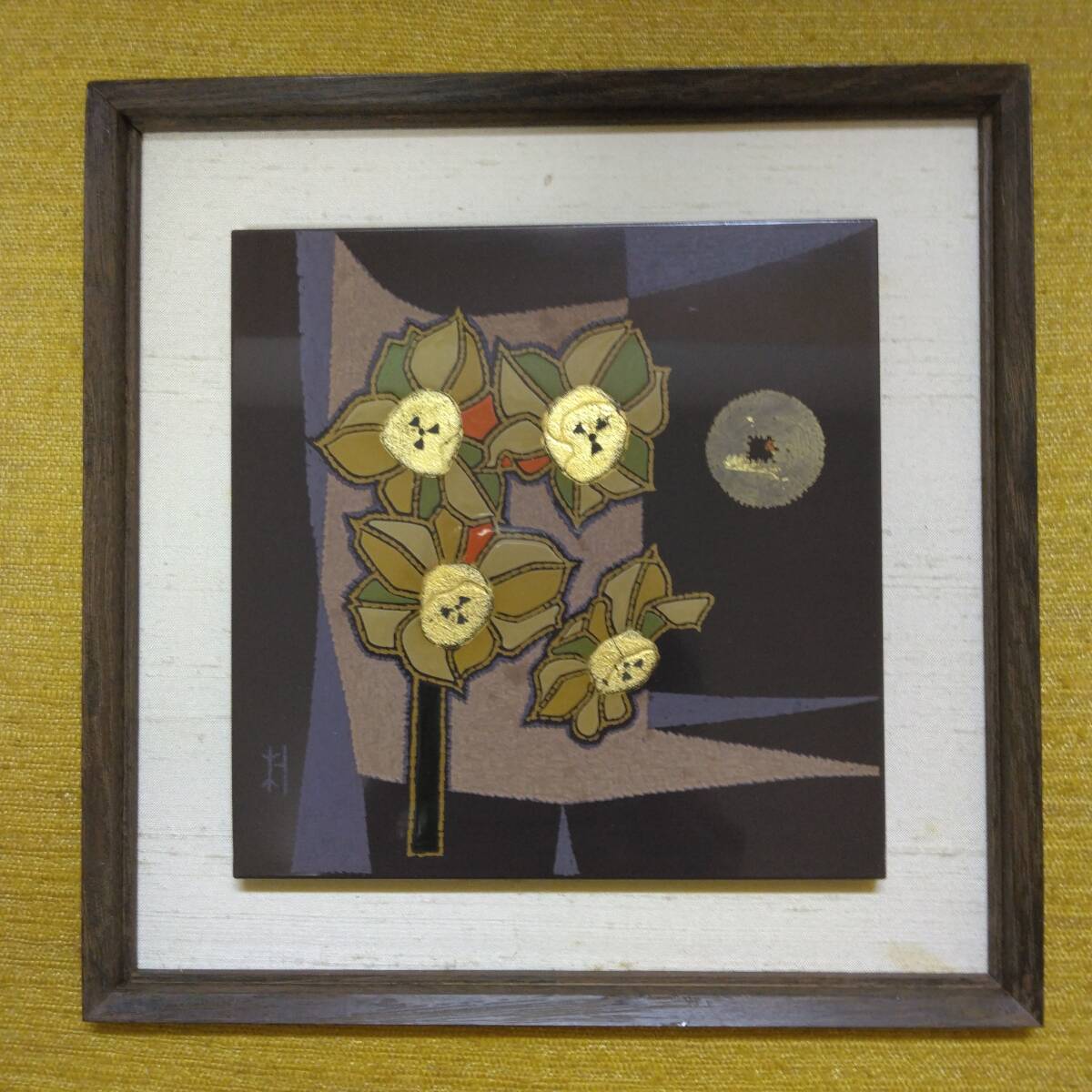 【T-423】讃岐漆器 蒟醤 明石朴景 水仙華文額 共箱付 | |||