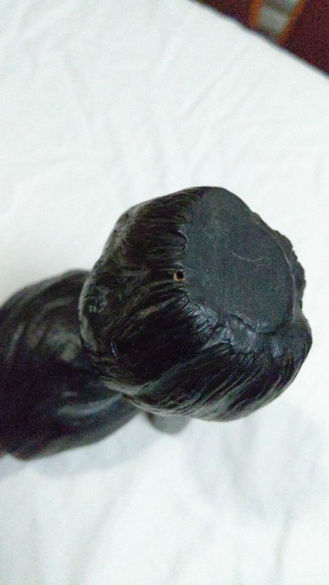 そもそも流通している如意は、柘植などの木材を削って、孫の手のようなもの、仙人や魔法使いが持つ杖のような先端が丸まってロール状になっているもの、そして一般的には蓮のつぼみや蓮の花、花托や蓮台、そしてそれらを繋ぐ蓮の茎までを表現しているものが多く、木材にニスを塗ったような色と質感をしております。そのため、このような黒色と丸い形状をした如意はヤフオクやフリマサイトには出品されていない状況です。こちらの如意に詳しく、ご興味のある方、是非この機会にいかがですか?