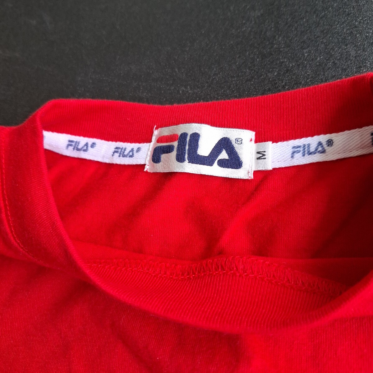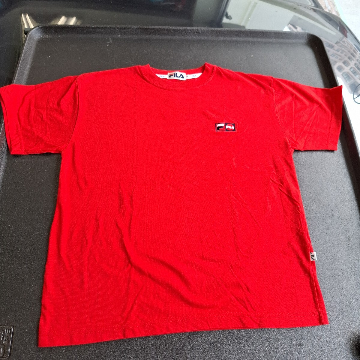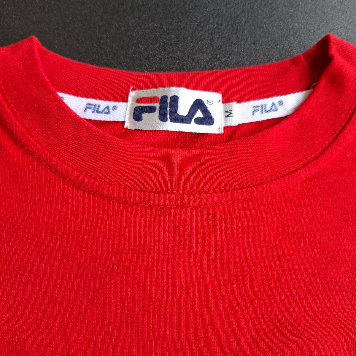ブランド 中古ヴィンテージ 赤 FILAワンポイント刺繍 半袖Tシャツ Mサイズ