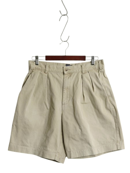 | 商品名 | 90s オールド ギャップ コットン チノ ショートパンツ メンズ 33 旧タグ ショーツ 短パン ツータック チノパン ボトムス ゆったり ベージュ |
