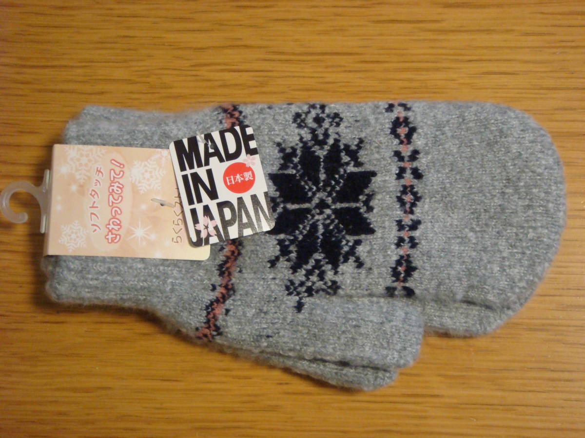 ★ニットミトン手袋★雪の結晶柄★新品★日本製★グレー★
