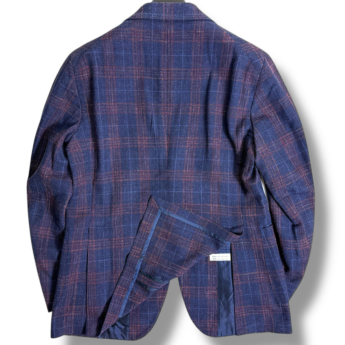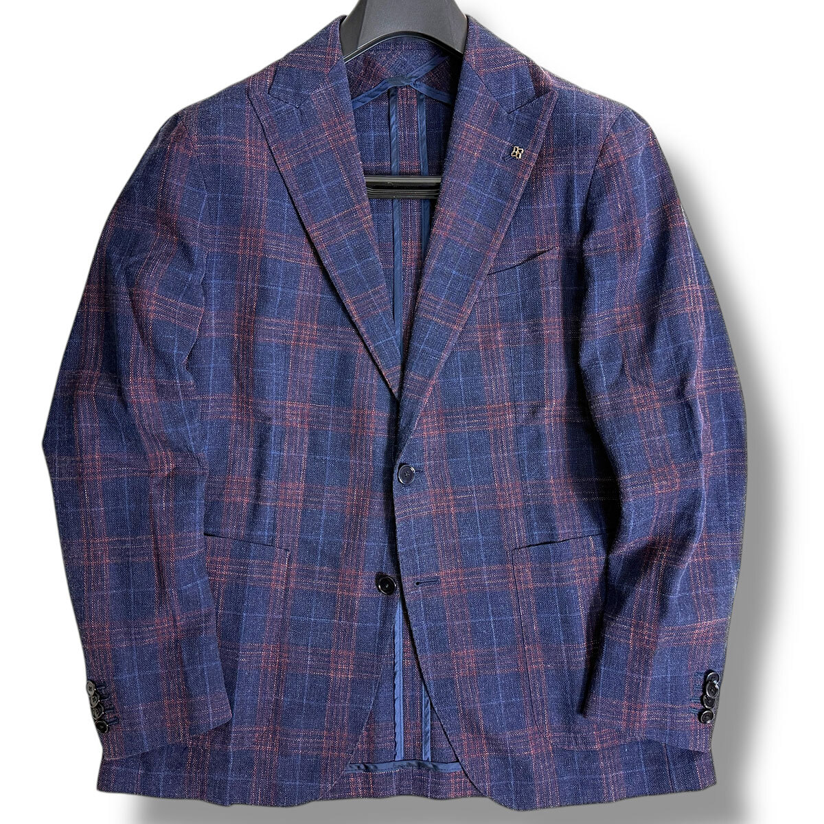 J7419 美品 タリアトーレ 1SMC26K シルクリネン チェック柄サマージャケット ネイビー 48 TAGLIATORE