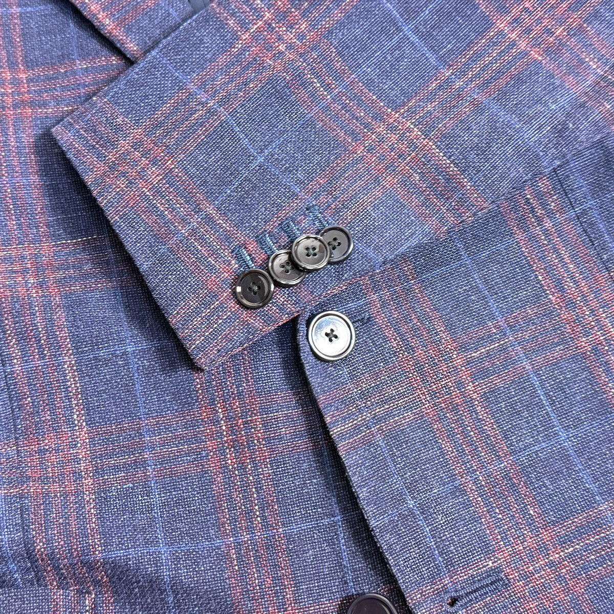 デザイン:フロント2つボタン、背抜き裏地、サイドベンツ、袖本切羽。