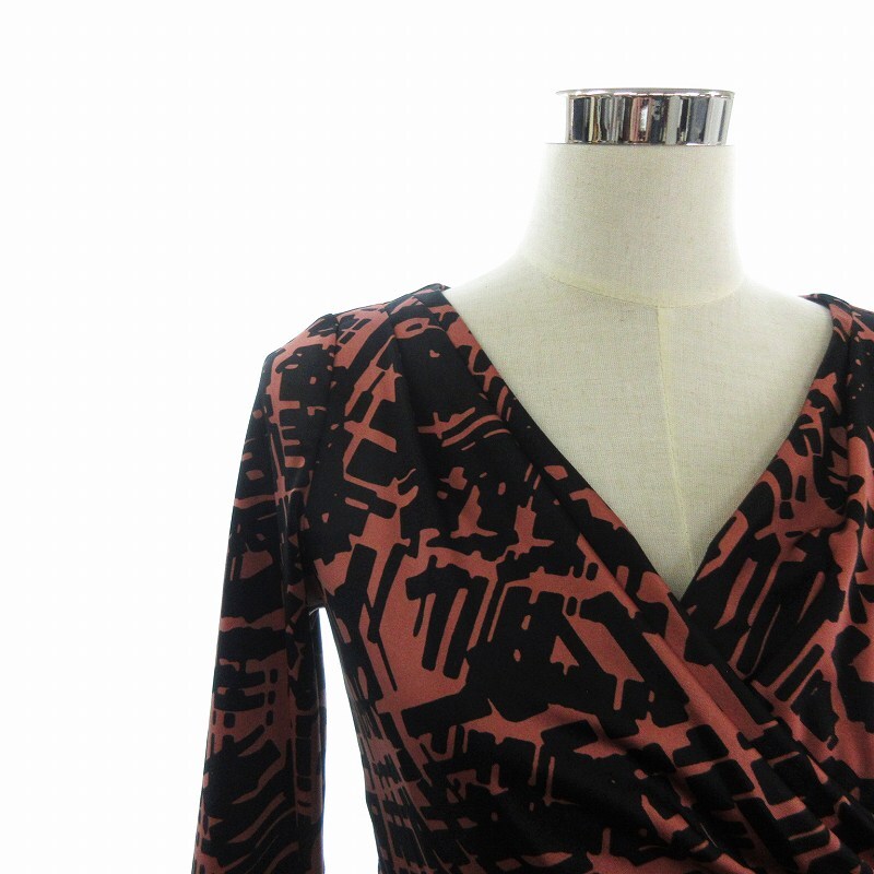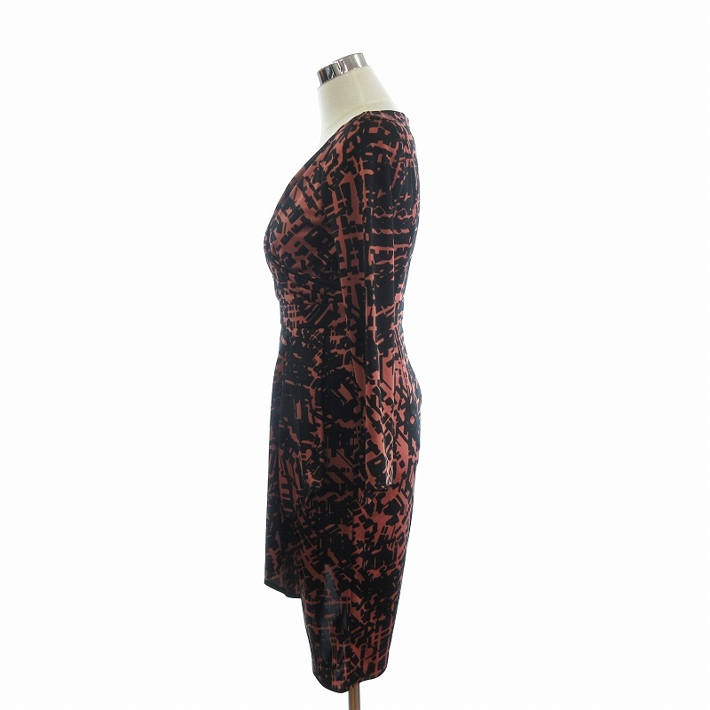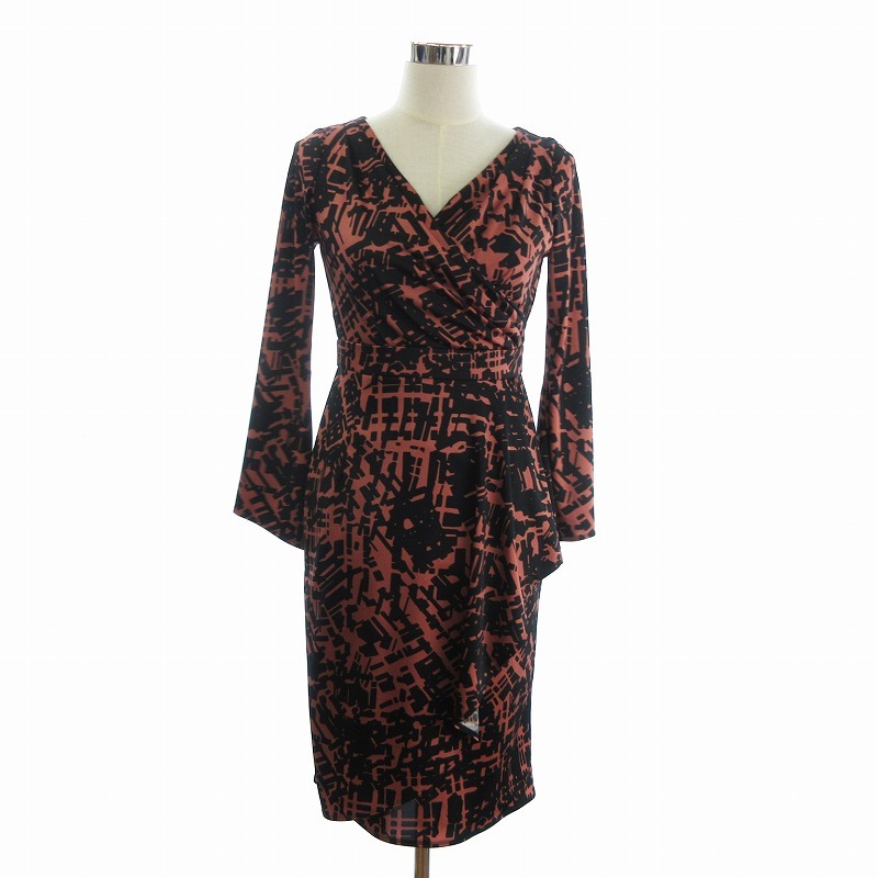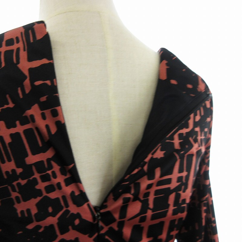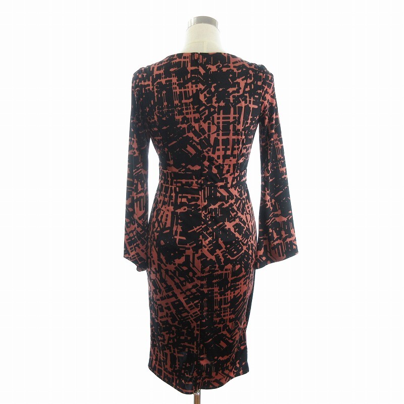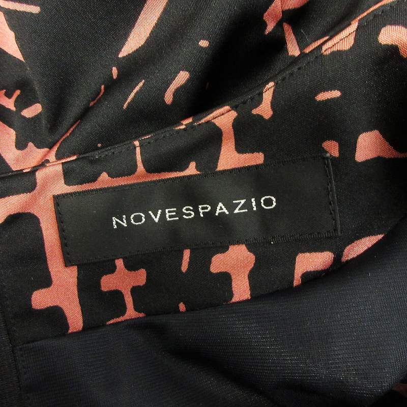 ノーベスパジオ 美品 ドレス ワンピース 長袖 ひざ丈 総柄 バックジップ 033-240007 黒 ブラック 茶 ブラウン 38 レディース