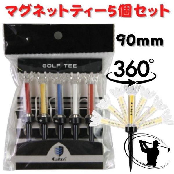 ゴルフ 90mm マグネットティー 5本セット ロングティー 飛距離アップ 分離 ドライバーティー ウッドティー 紛失防止 ゴルフ用品