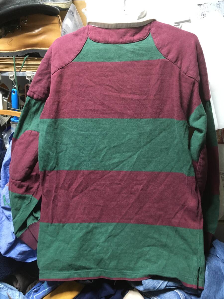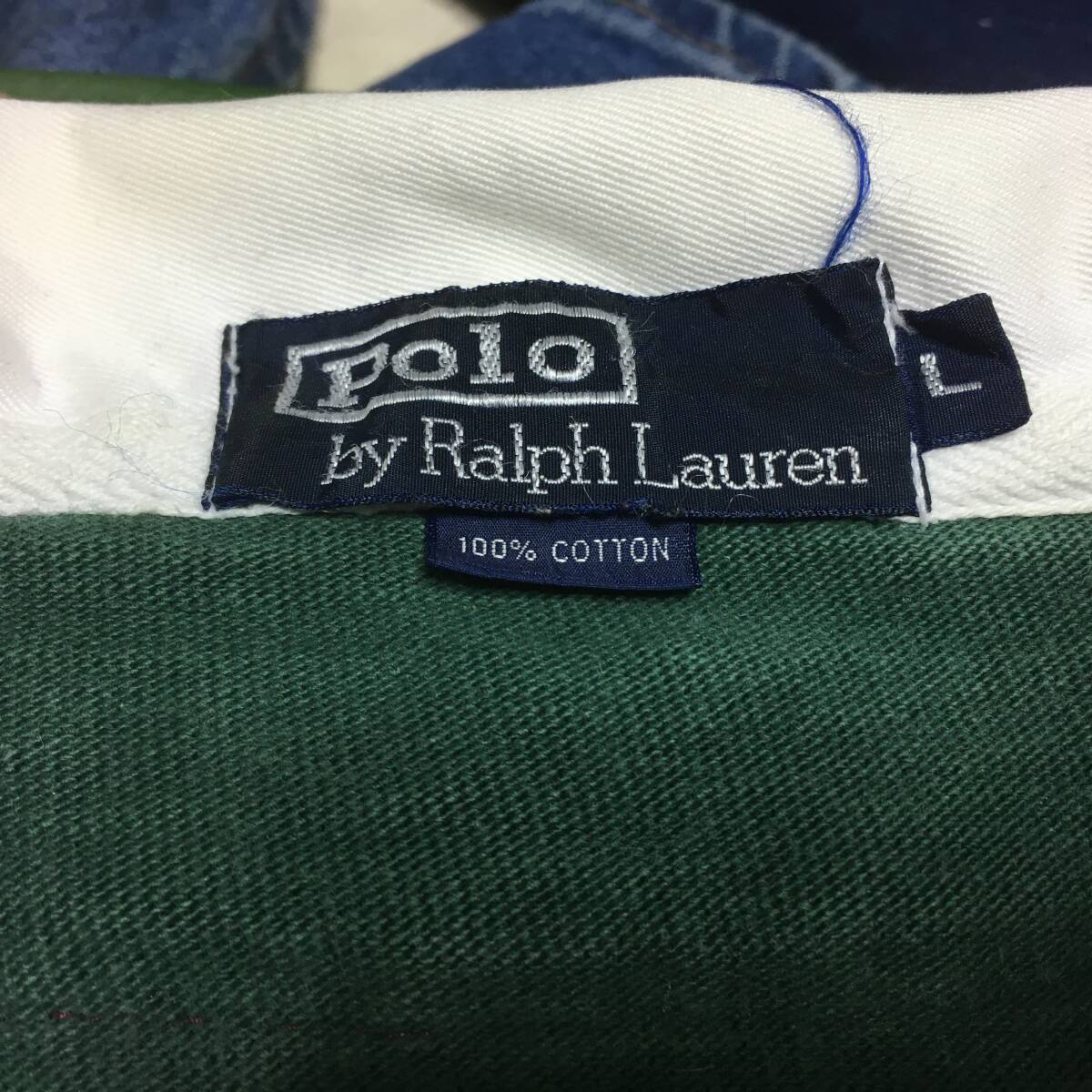 2506ナイガイ製90'sオールドOLDポロ ラルフローレンPOLO RALPHLAUREN太ボーダー エルボー・ショルダーパッチ付ラガーシャツL古着ビンテージ