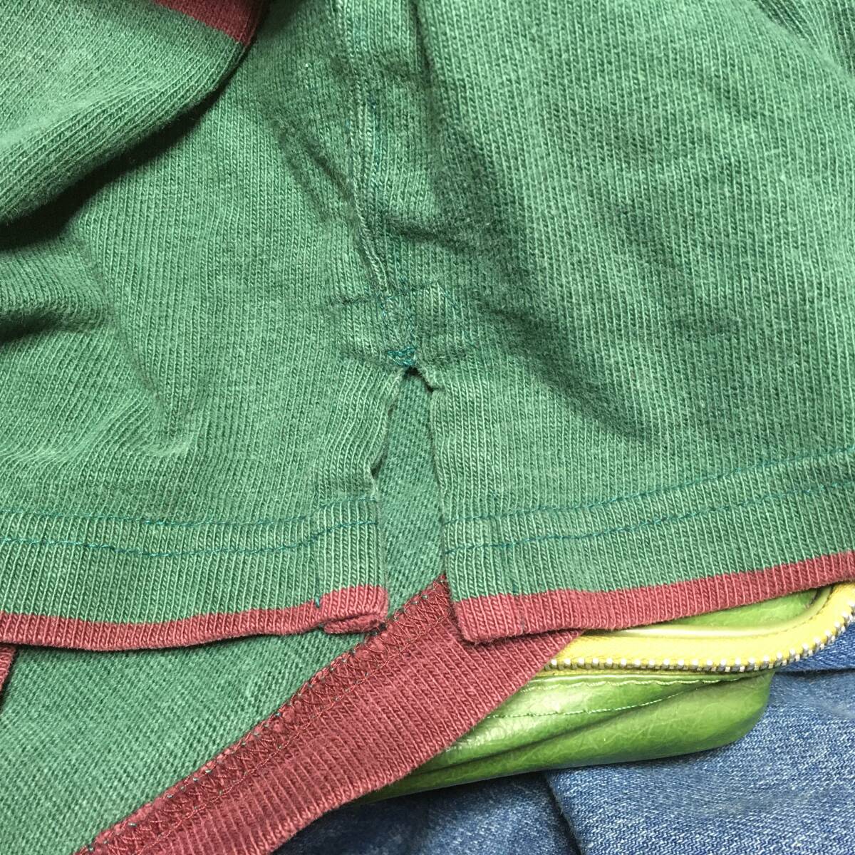 カラーはダークグリーン×バーガンディの太いボーダーになっており、