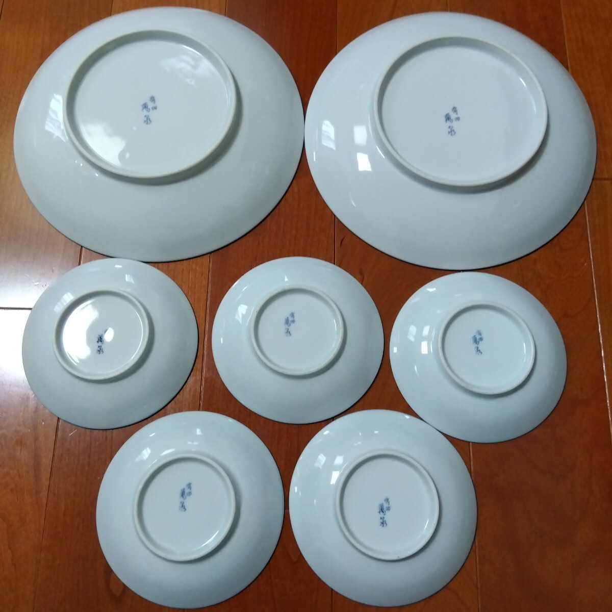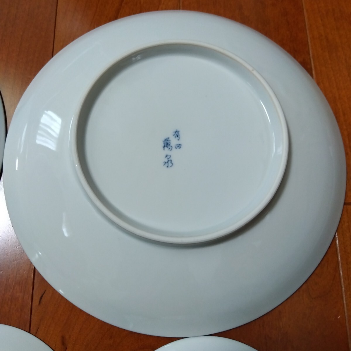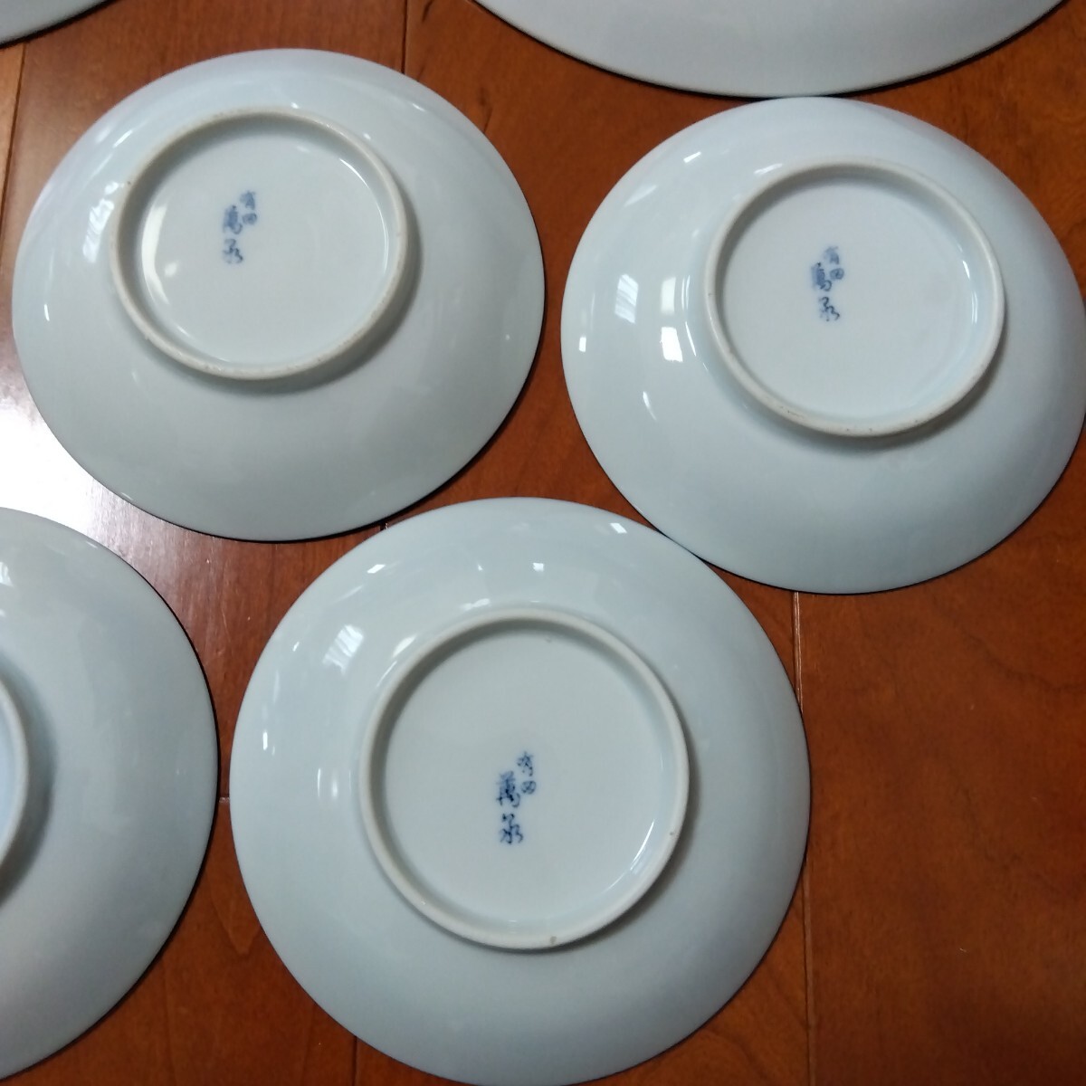 未使用 ☆★新品 有田焼 萬永 和食器 皿 大皿×2枚 中皿×5枚 合計7枚 まとめてセット プレート 花 青 ブルー 箱無し☆★希少即決