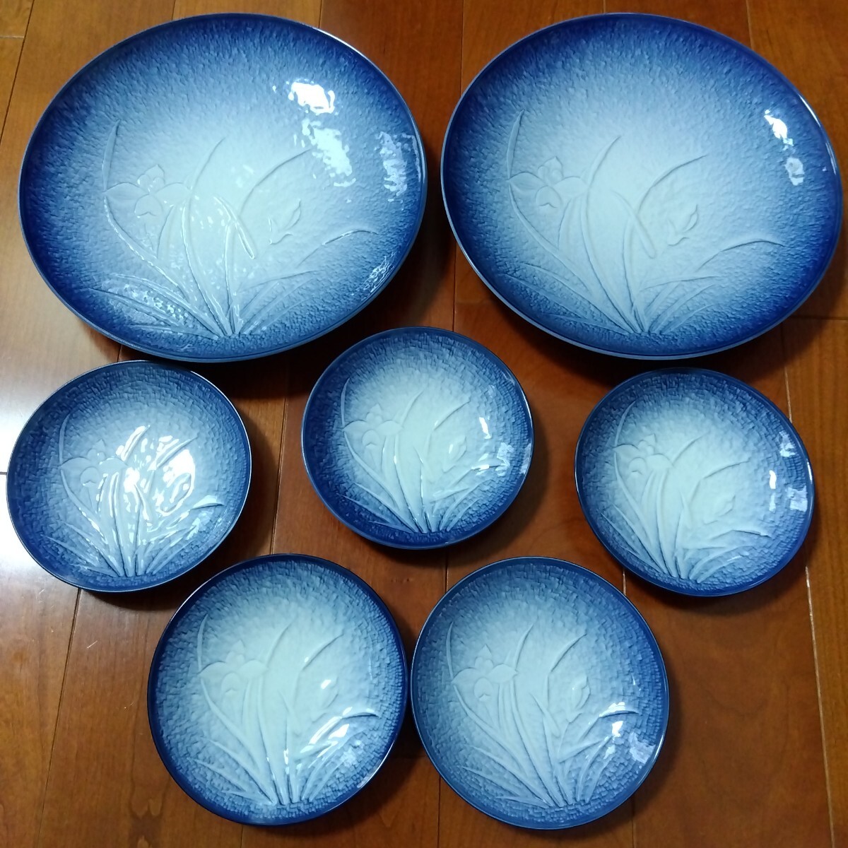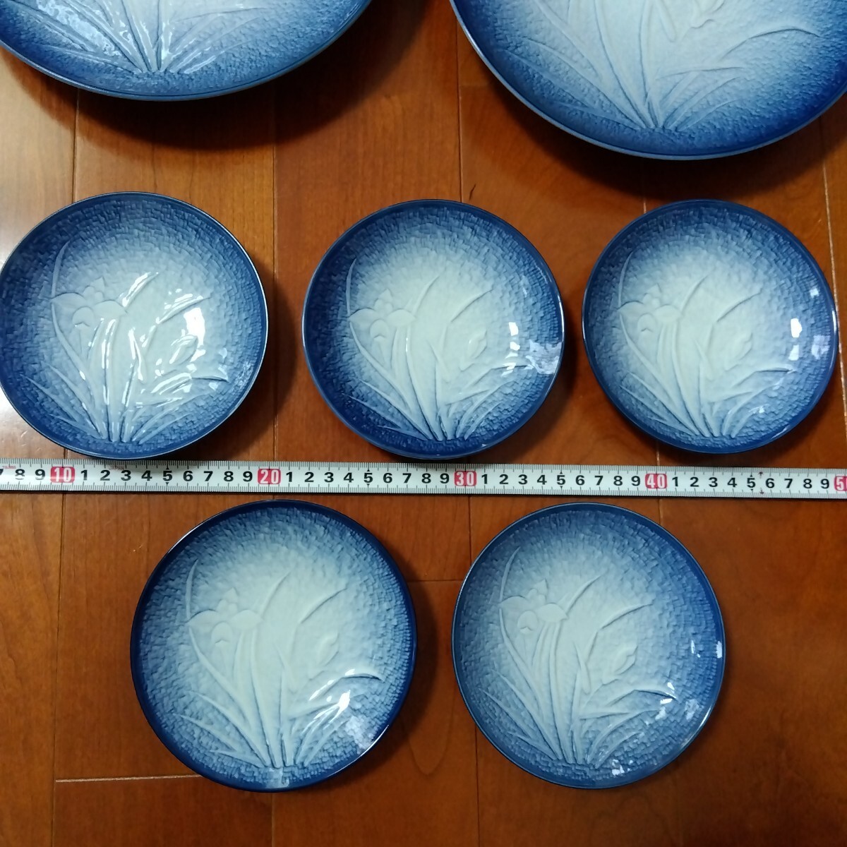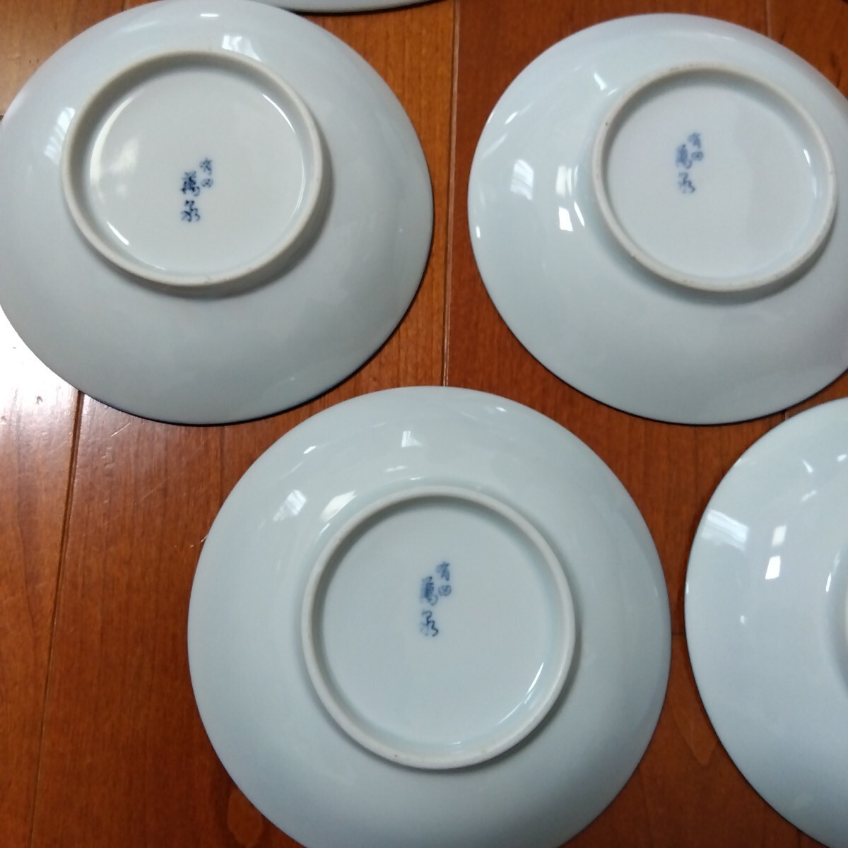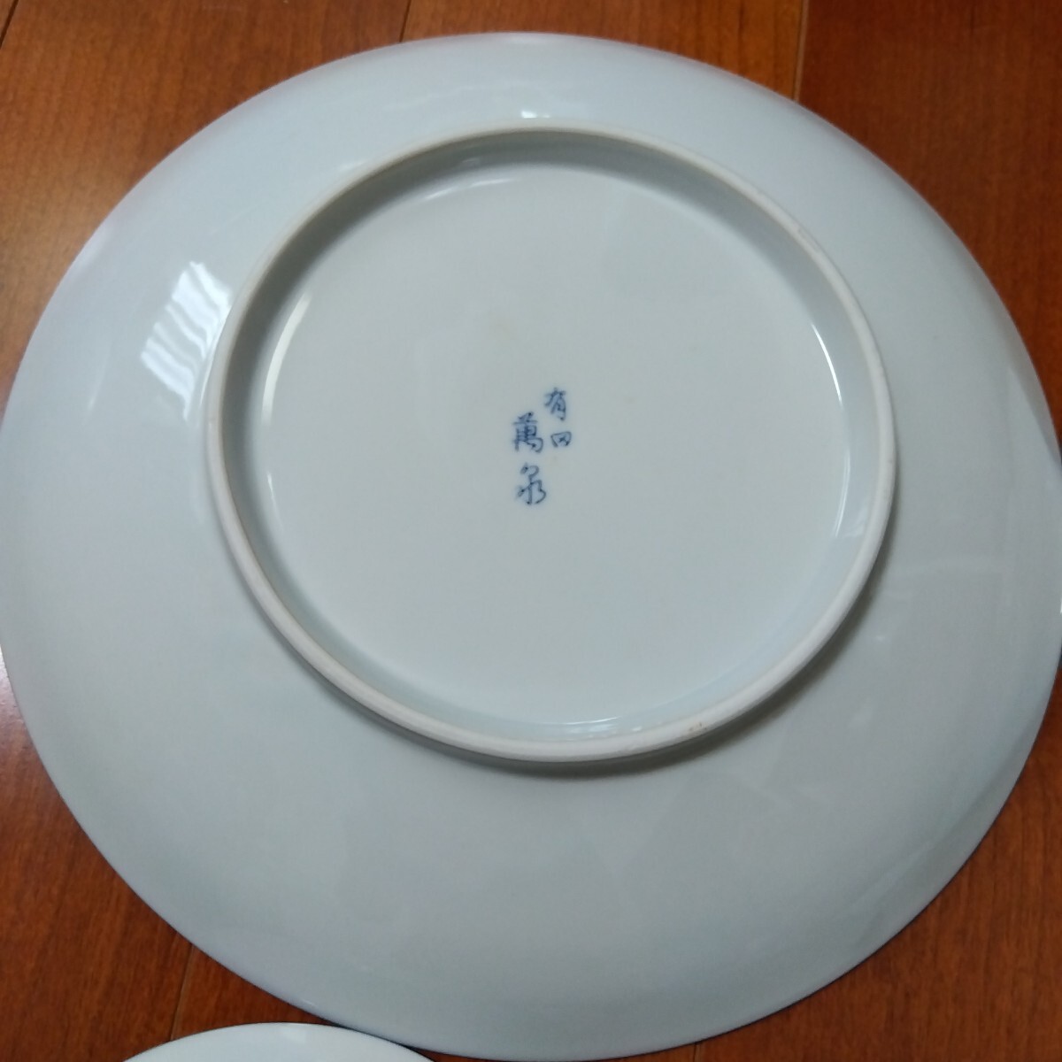 未使用 ☆★新品 有田焼 萬永 和食器 皿 大皿×2枚 中皿×5枚 合計7枚 まとめてセット プレート 花 青 ブルー 箱無し☆★希少即決