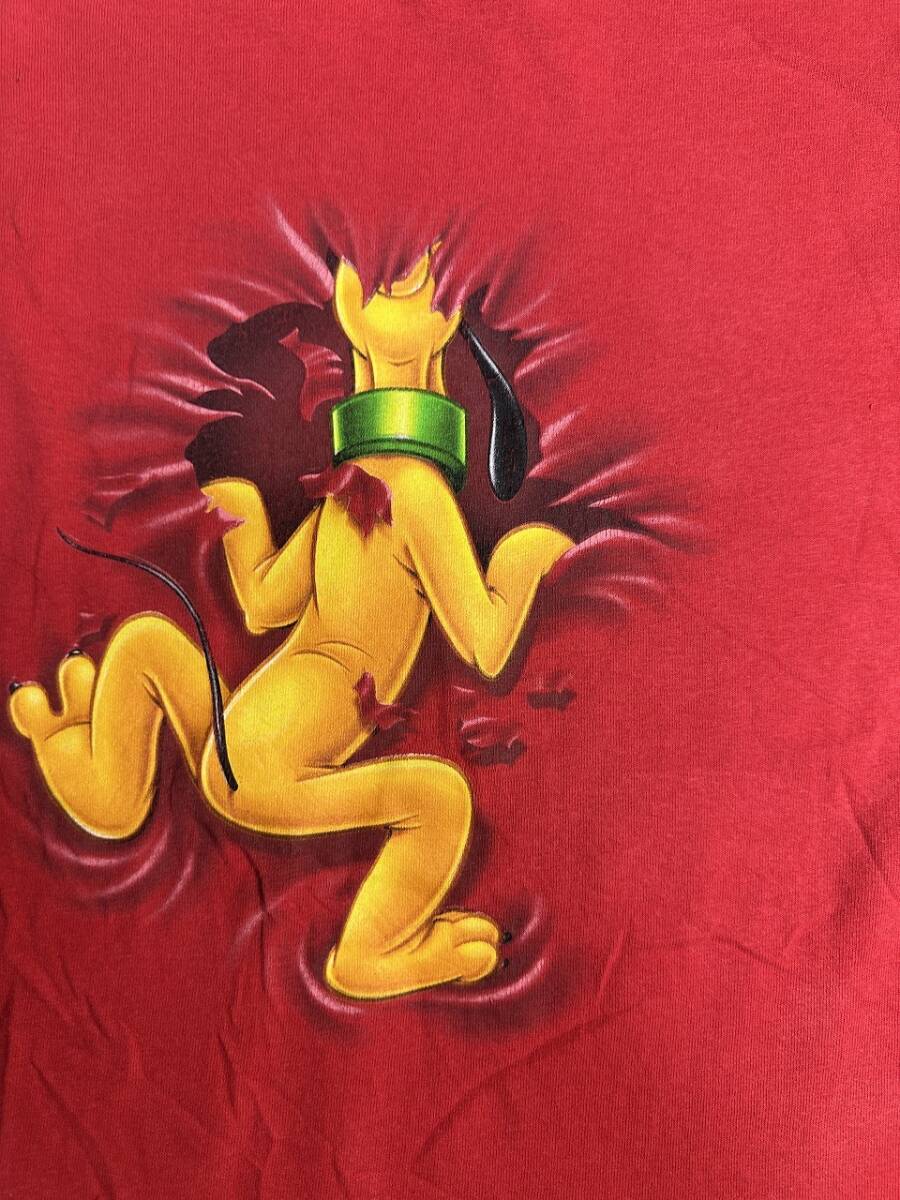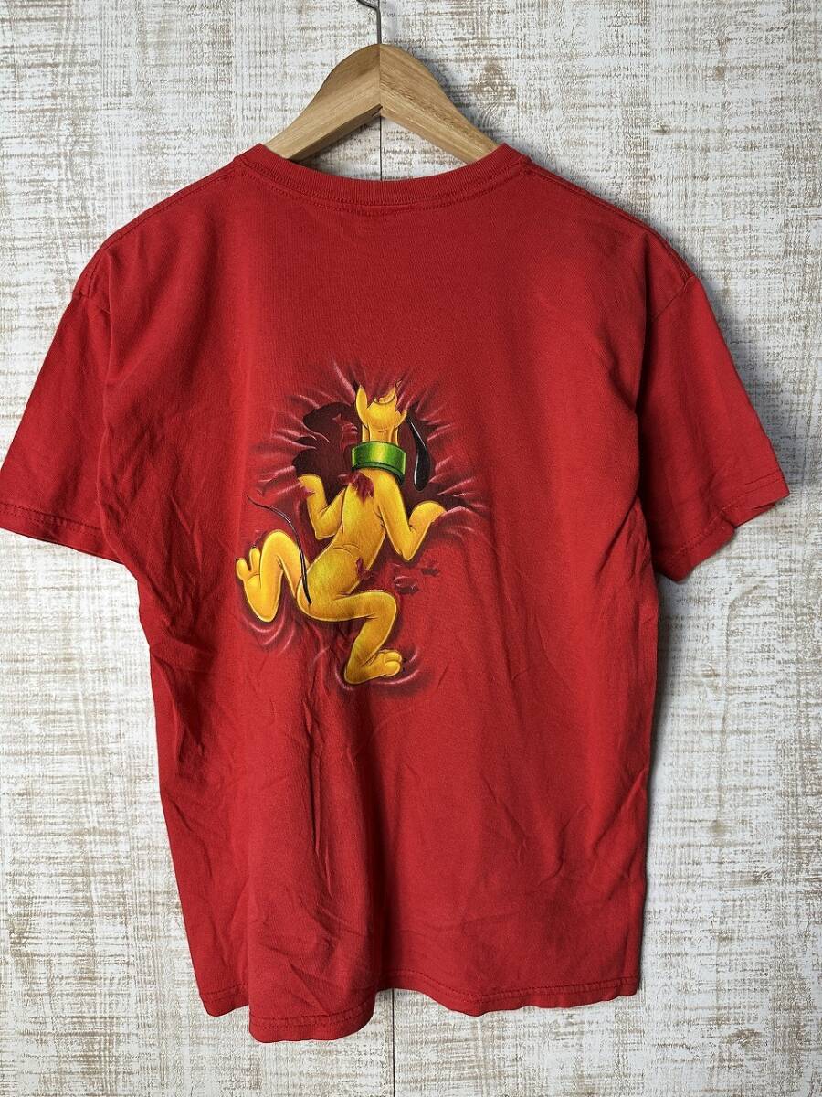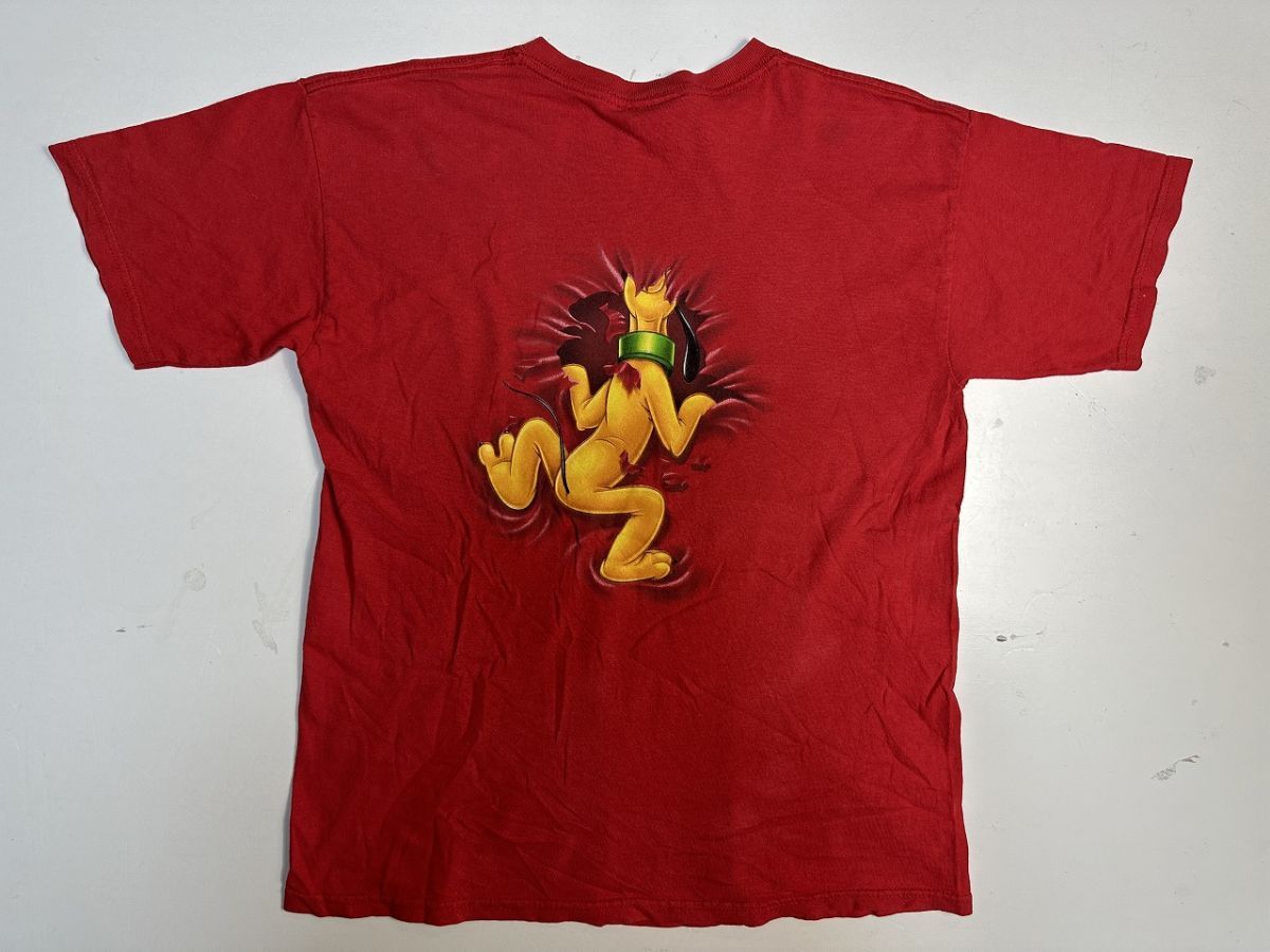 ●US USED Disney ディズニー キャラクター Tシャツ プルート アニメ プリント 両面 レッド赤 キッズ【L-XLくらい】コットン