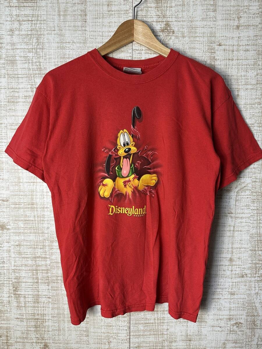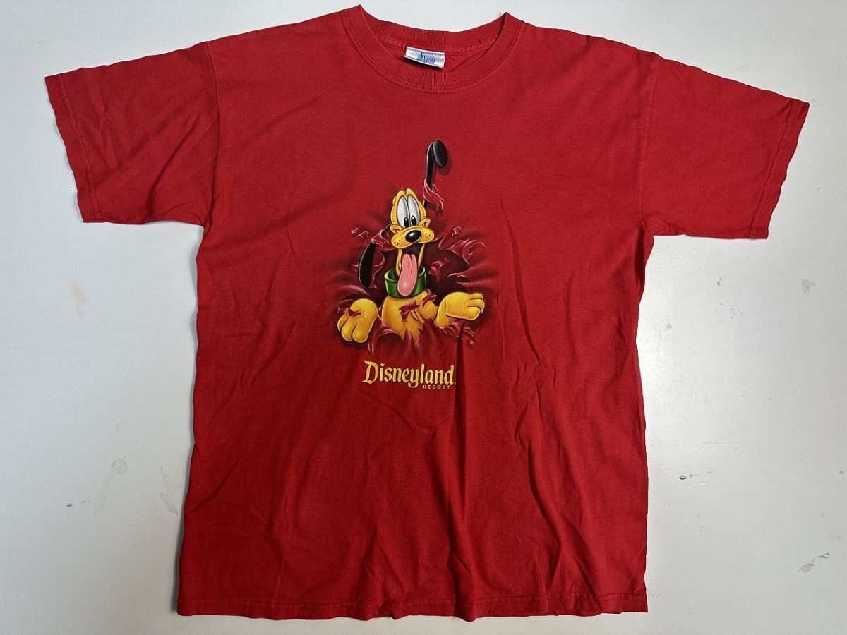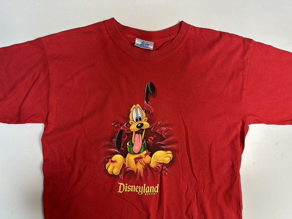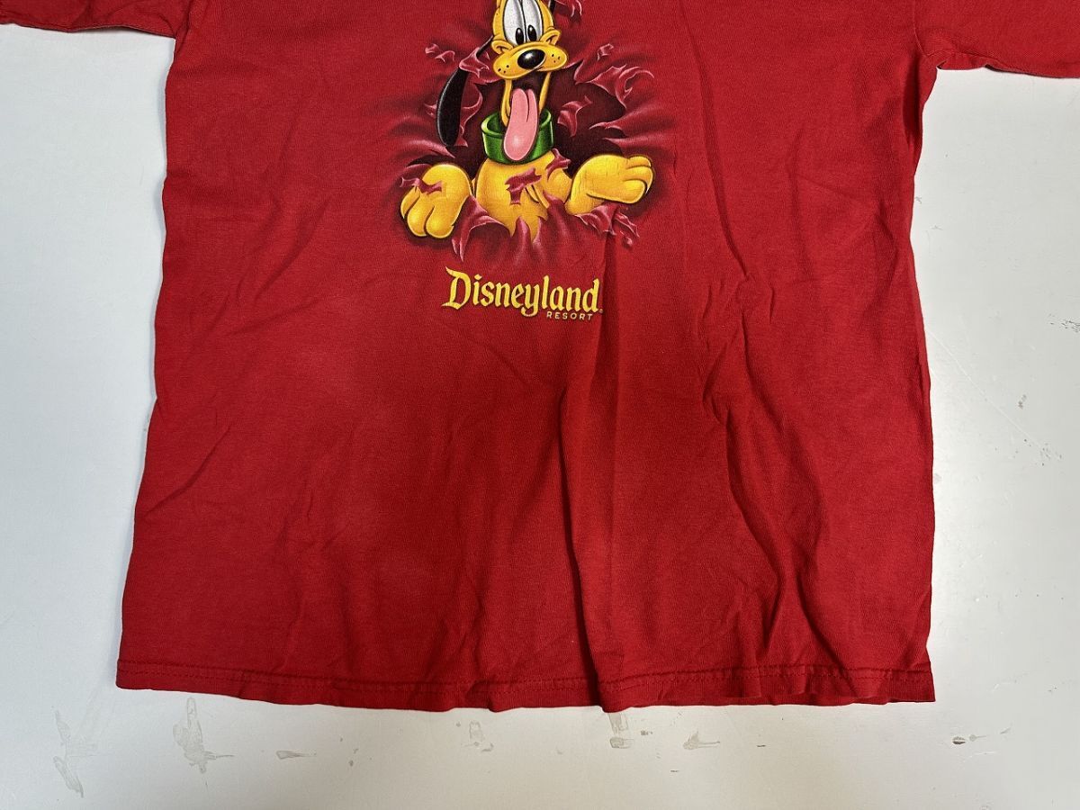 ●US USED Disney ディズニー キャラクター Tシャツ プルート アニメ プリント 両面 レッド赤 キッズ【L-XLくらい】コットン