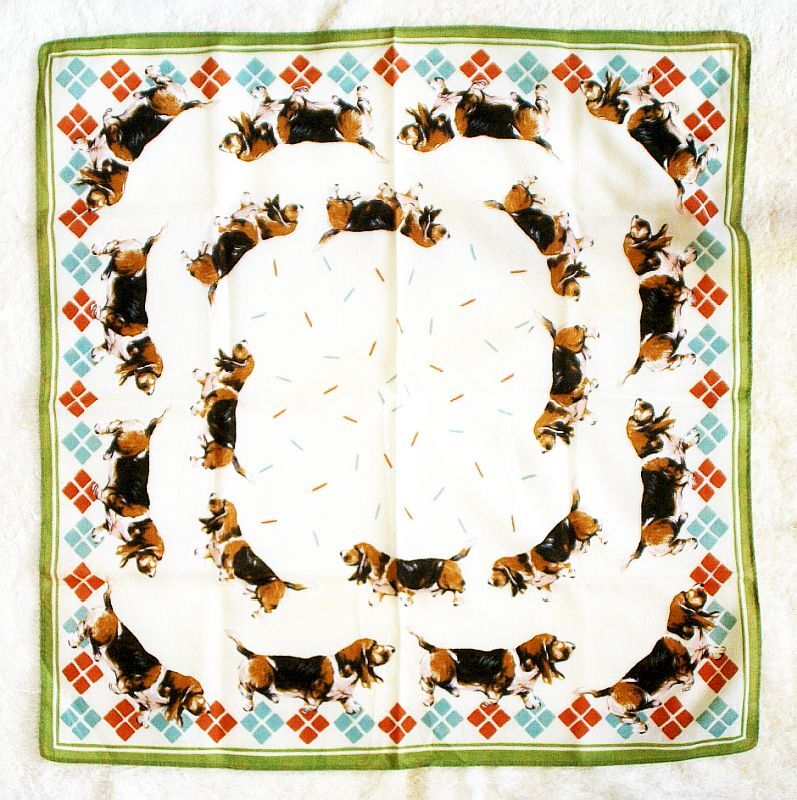 【ハンカチーフ】 ダックスフンド(犬柄 社名なし)/サイズ:400㎜×400㎜/中古 他のハンカチ類と同梱可能
