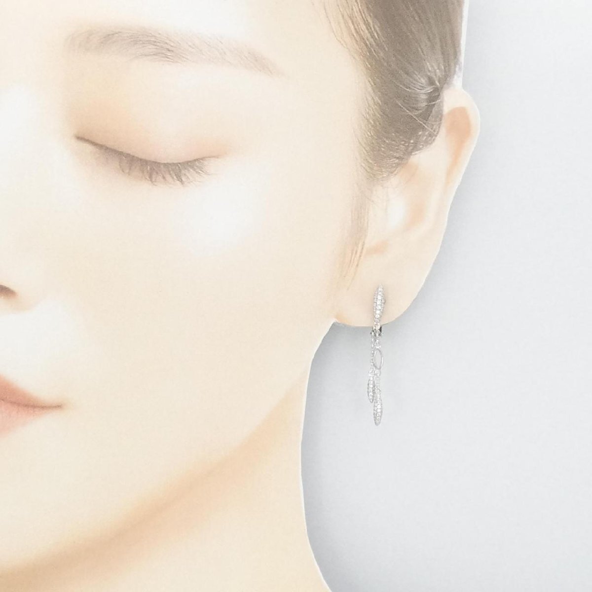 細かい光を放つダイヤモンド。耳元で揺れる品のよいジュエリーです。