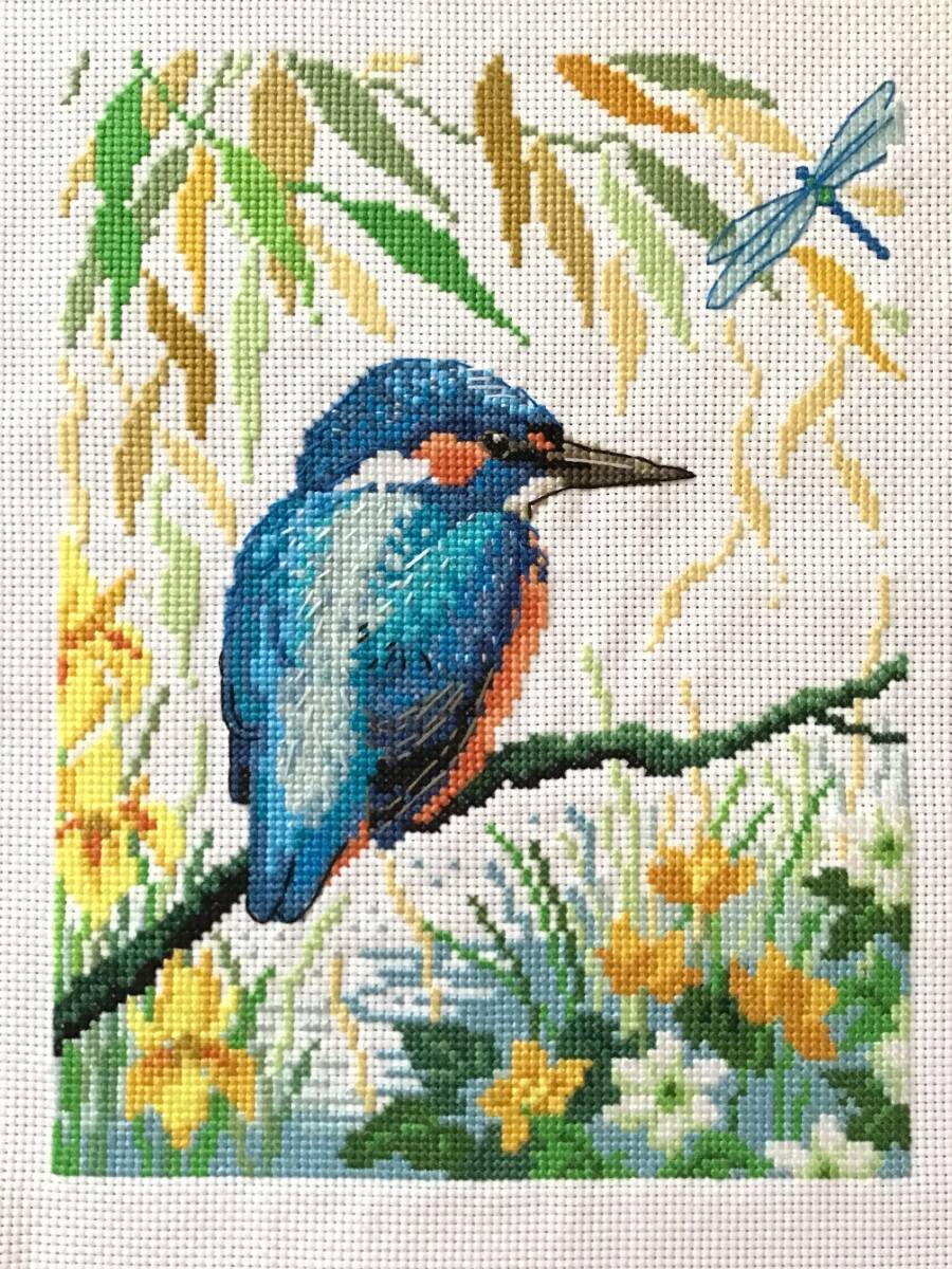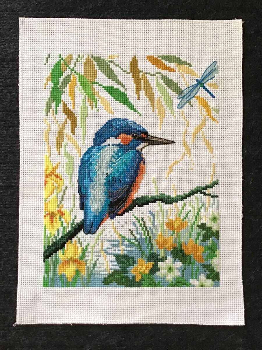 ハンドメイドクロスステッチ『カワセミ 鳥 野鳥』完成品 31色使用