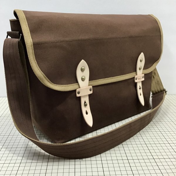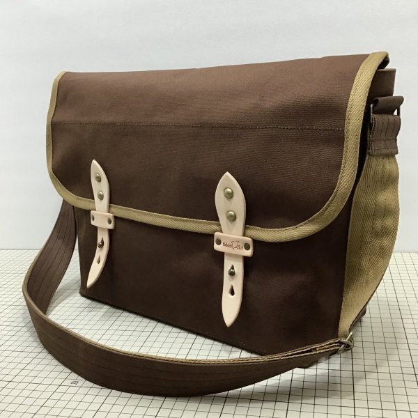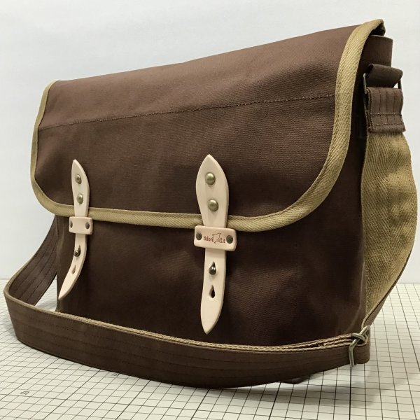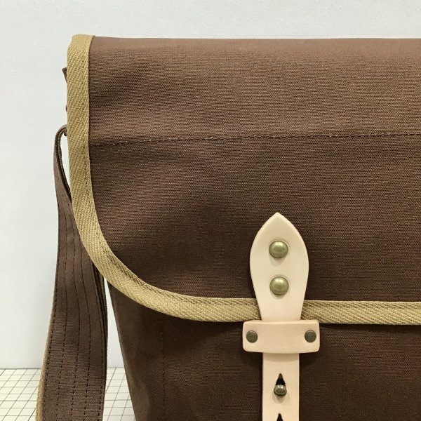 パラフィン加工がされた10号帆布を使用したショルダーバッグ。
