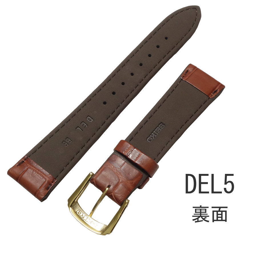 | 新品未使用国内正規品 ワニクロコダイル メーカー:セイコー メーカー品番:DEL5 16,500円(税込み) カン幅:18mm 美錠幅:15mm 厚み:4mm 長さ:美錠側 70mm(美錠含まず) 剣先側 115mm 色:茶 裏材:テグラン 美錠材質:ステンレス 美錠は金のみとなります。 | ||