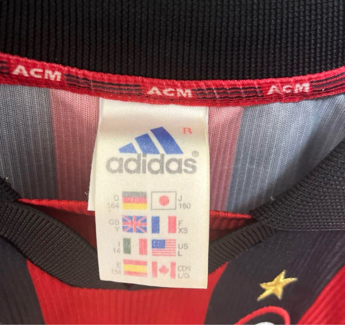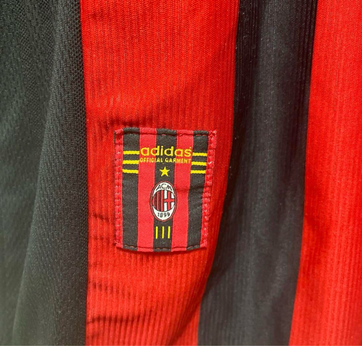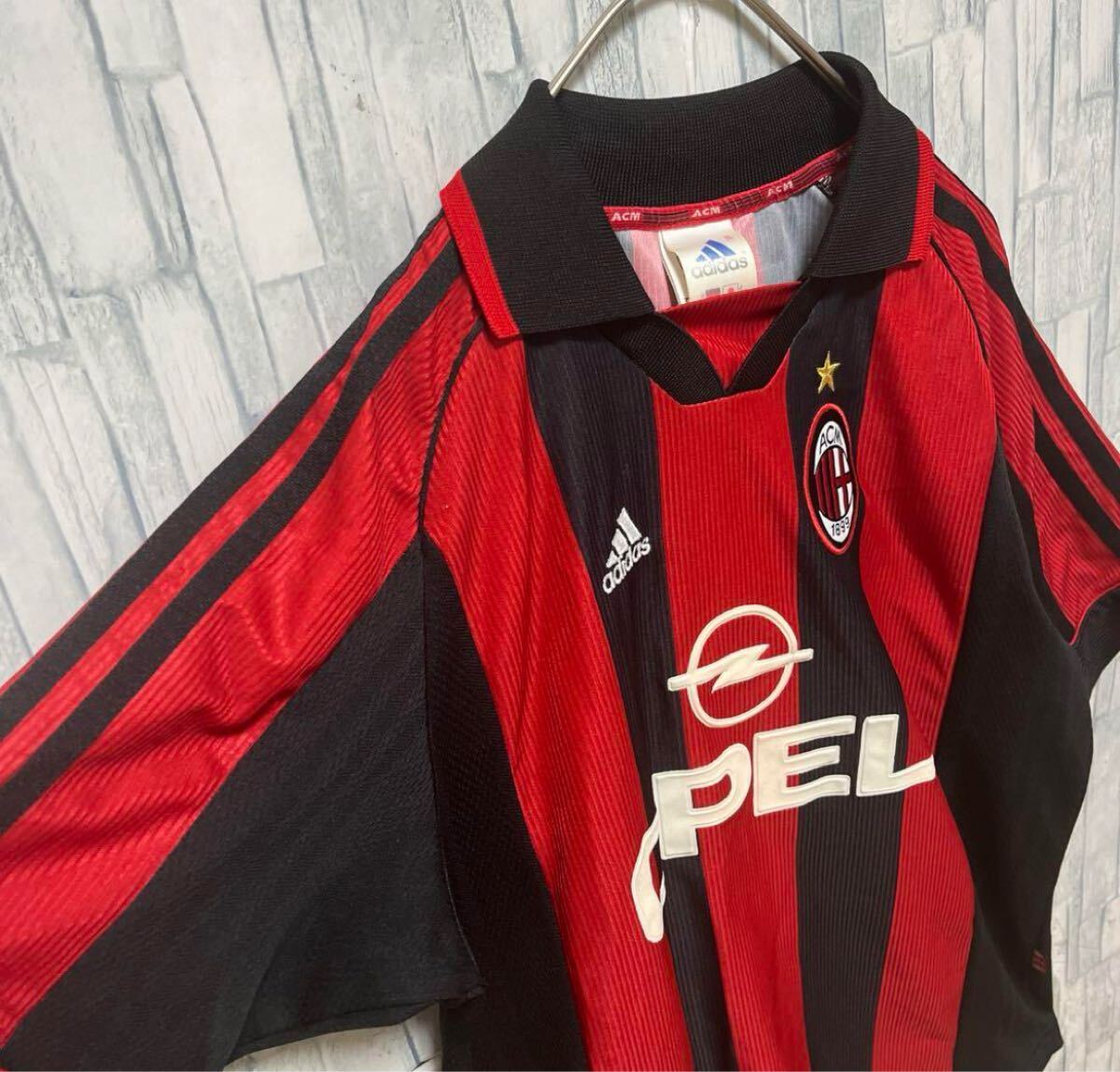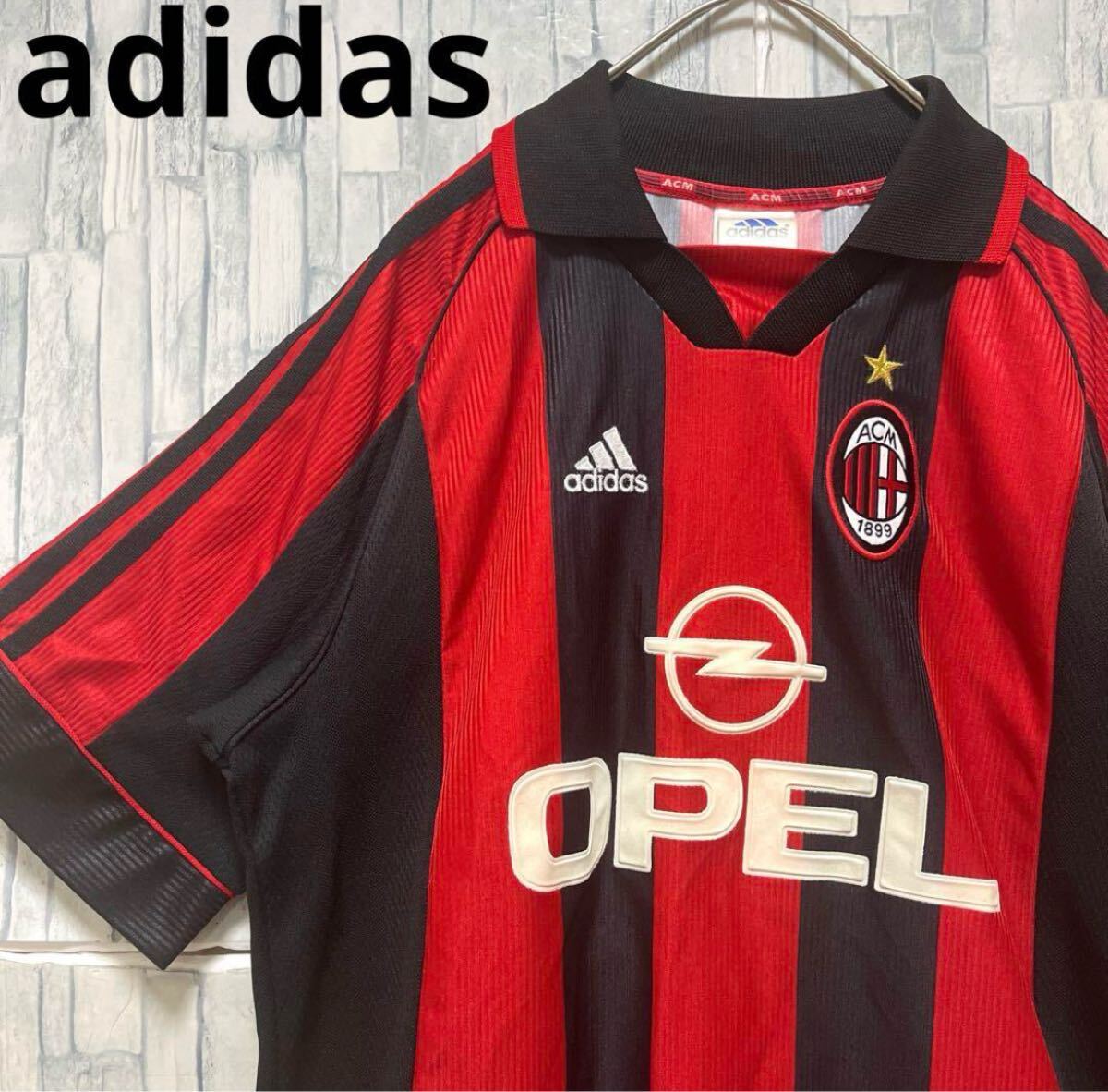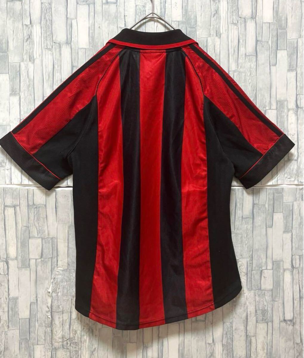 adidas アディダス イタリア セリエA ACミラン ゲームシャツ ユニフォーム サッカーシャツ サイズS 刺繍ロゴ ワッペン パフォーマンスロゴ 半袖 3ライン 3ストライプ 98-98 90s イタリア製 送料無料の出品です。