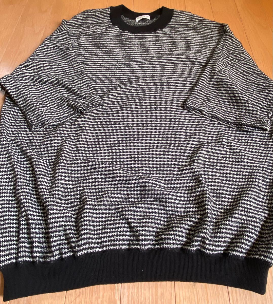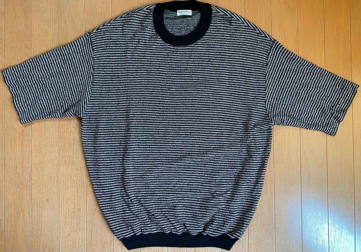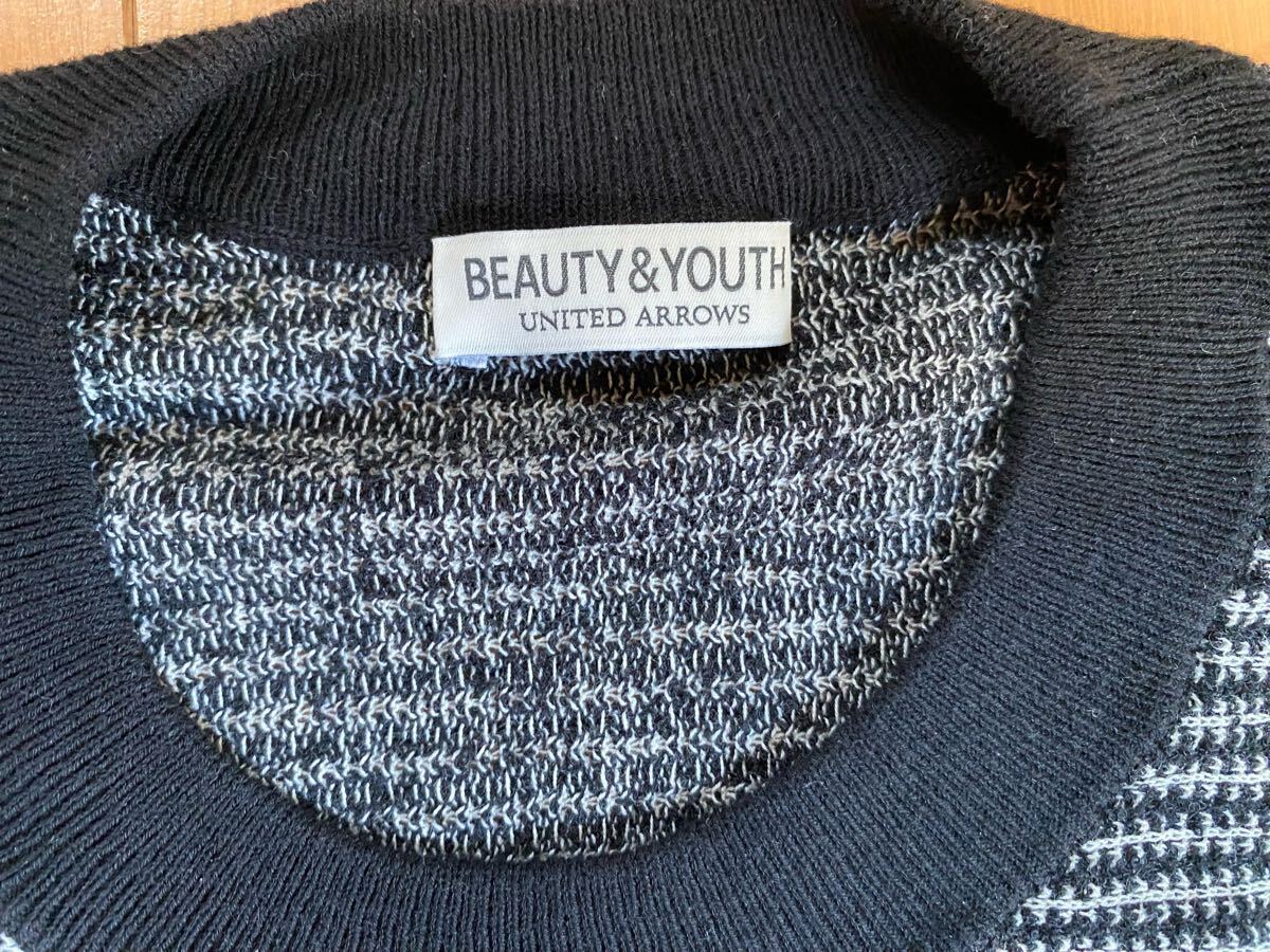 美品 [ビューティー&ユース ユナイテッドアローズ] TUB ジャカード クルーネック ショートスリーブ ニット 黒×白 サイズL