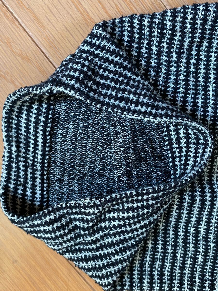 ニットの凹凸感のある表面変化が特徴的で、一枚で着映えする仕上がりに。