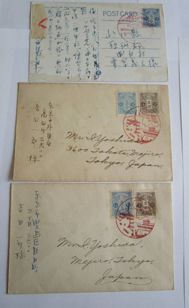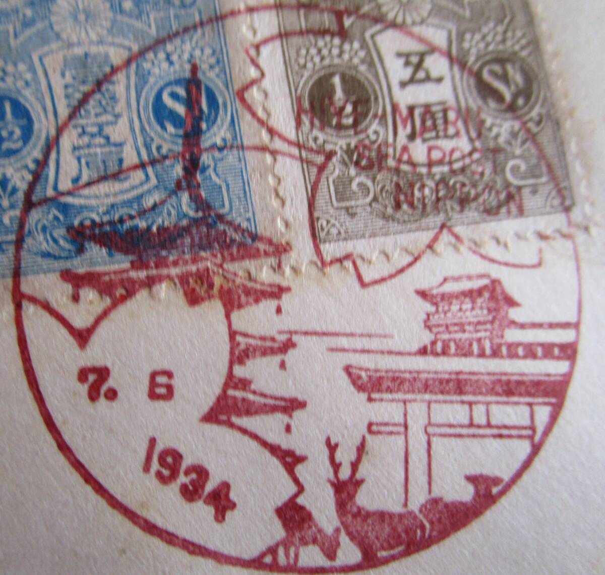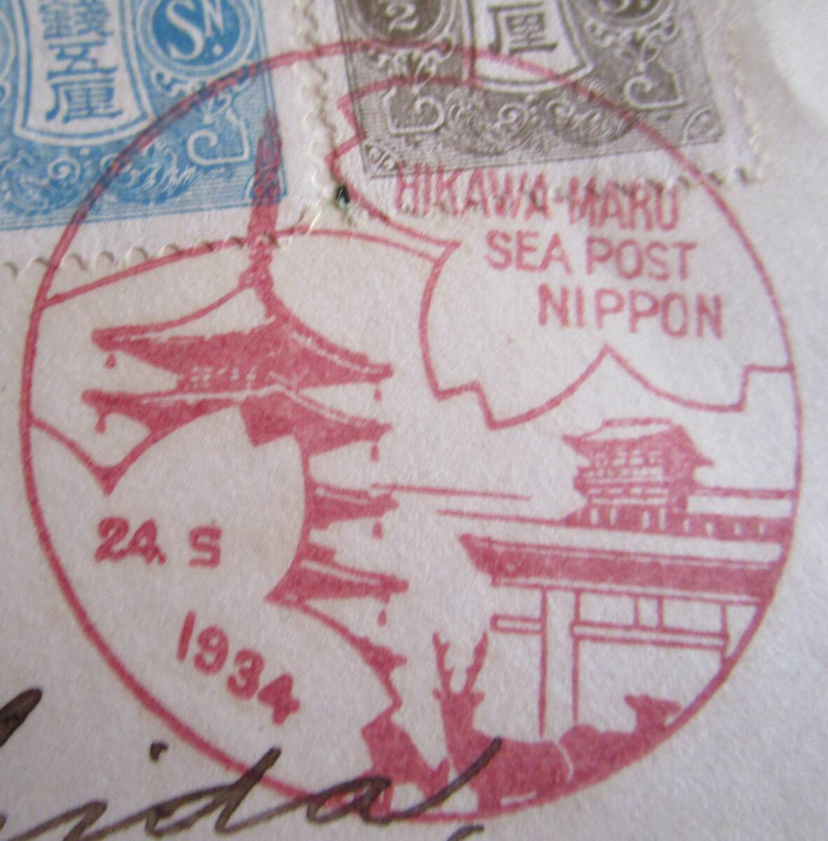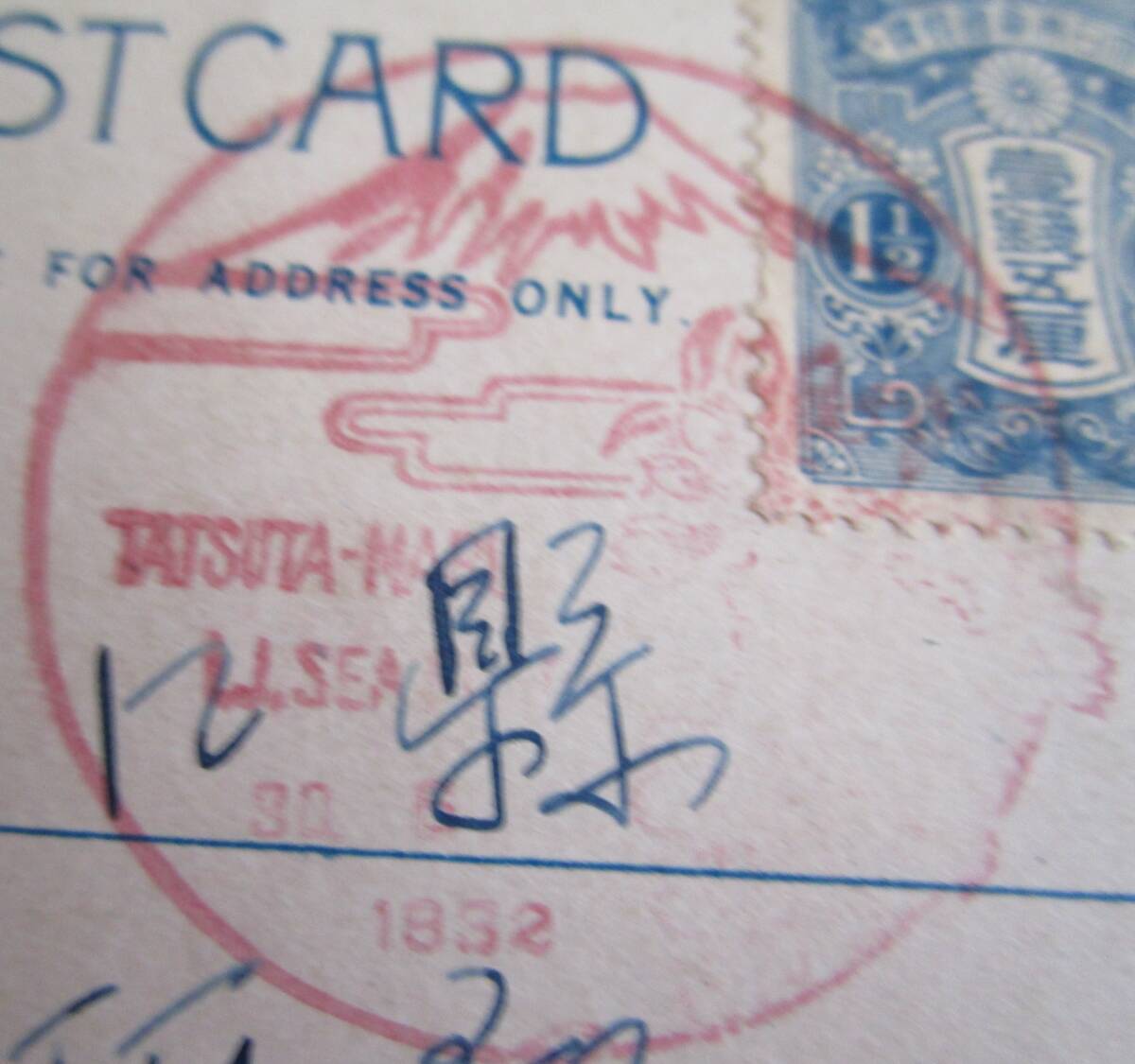 1、新大正毛紙1・5銭貼はがき・富士山と桜TATSUTAーMARU・I・J・SEAPOST・30・6・1932(NIPPON表示漏れエラー)消(画像3参照)→