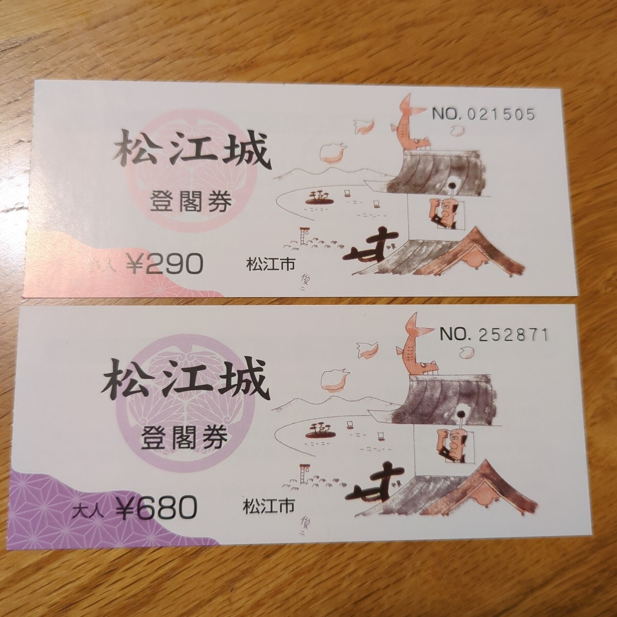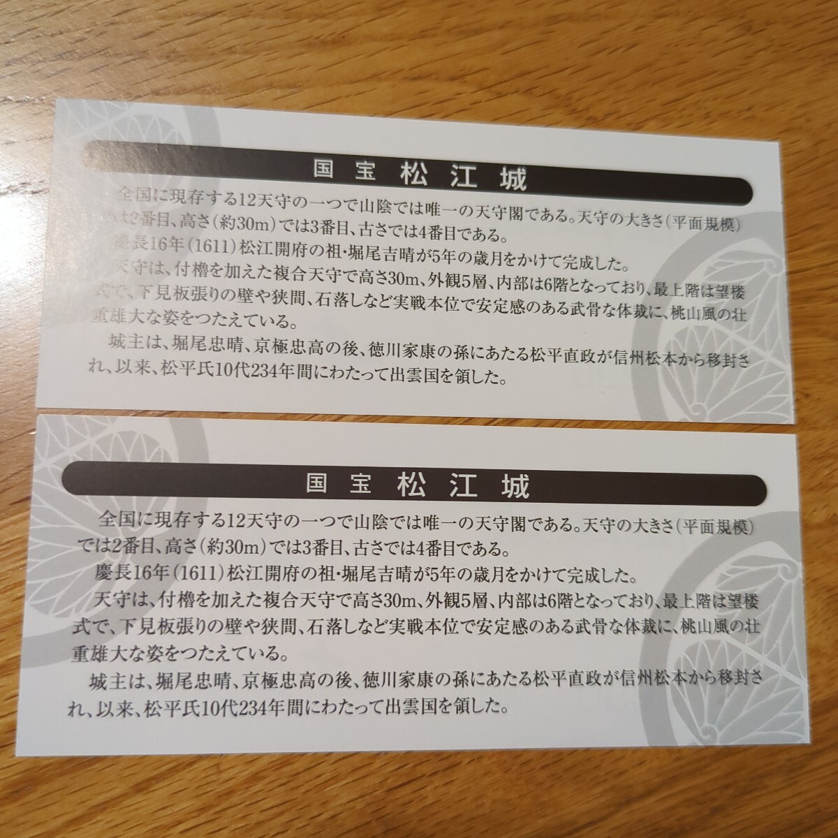 国宝 松江城 使用済み登閣券 半券 大人 小人 2種セット 使用済みチケット 使用済み入場券