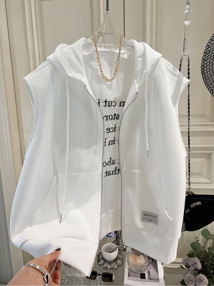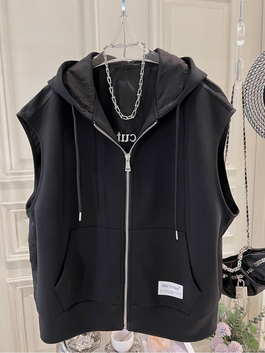 ベスト レディース ノースリーブ トップス ジップアップ 前開き ベスト フード付き スウェット 春アウター 羽織り 綿混 おしゃれ ライトスエット ベスト 袖なし ゆったり シンプル 無地 レイヤード 重ね着 カジュアル かわいい 春 夏 秋 LCFA012(2色L-4XL)