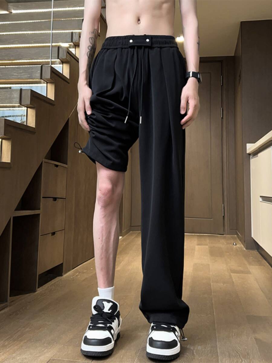 未使用 メンズ ワイドパンツ カジュアルパンツ クール 冷感 涼しい 大きいサイズ ウエストゴム 長ズボン 夏 無地 シンプル 薄手 3色M-5XL
