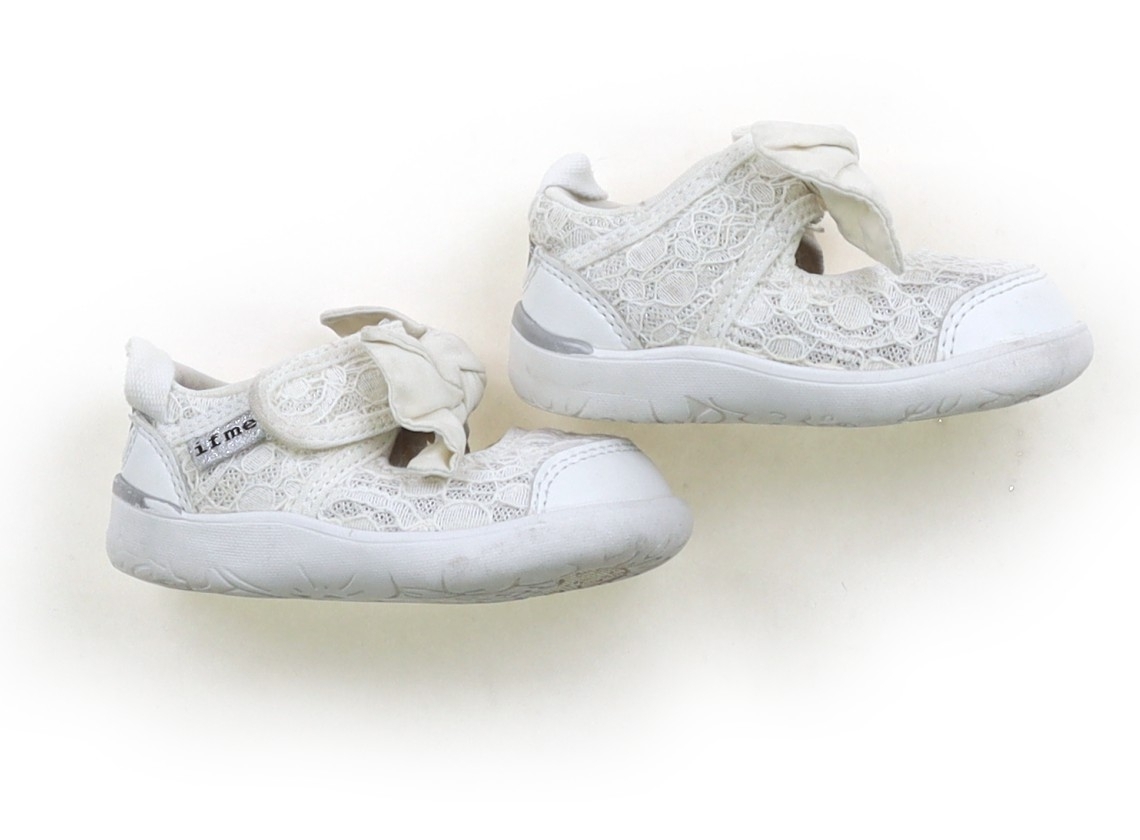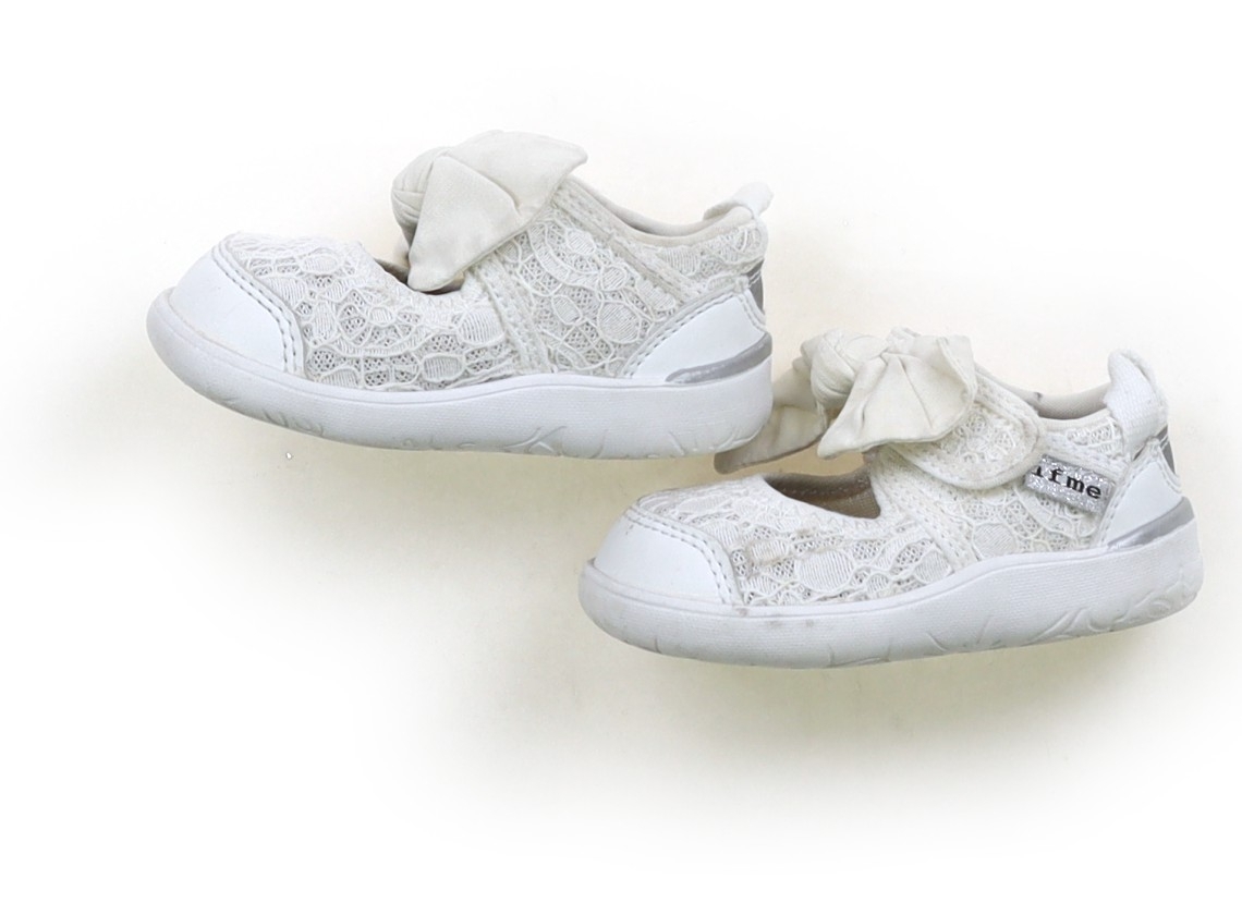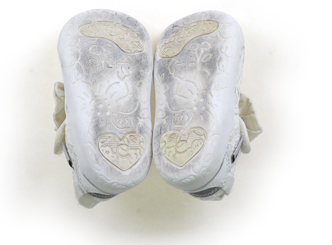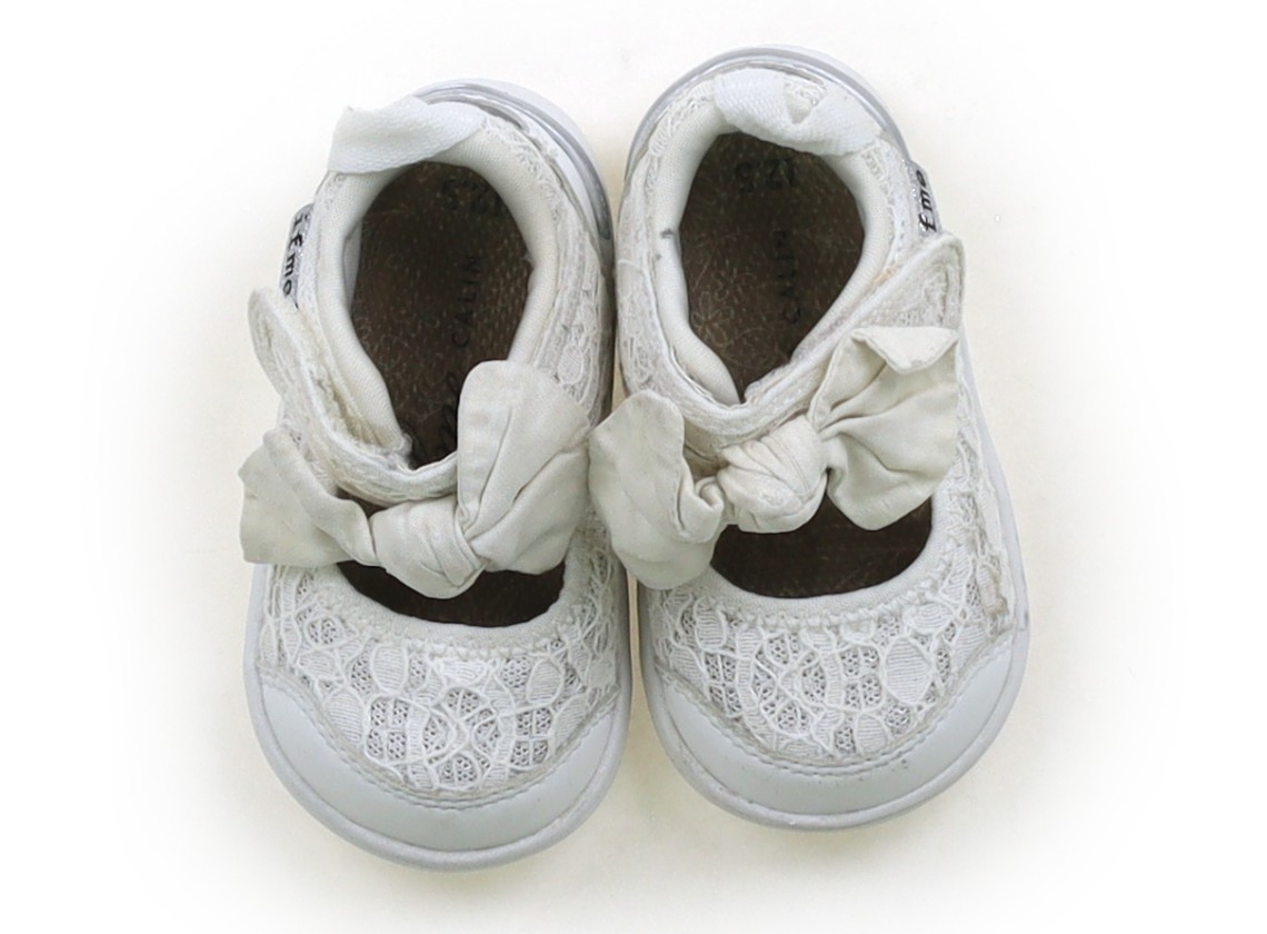 実際のサイズ表記は12.5cm。マジックテープ留め。ソールやリボンに薄汚れ、履き口に黒っぽい汚れ、マジックテープ部分に毛羽付着が見受けられます。普段使いにいかがでしょうか。