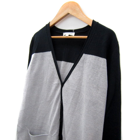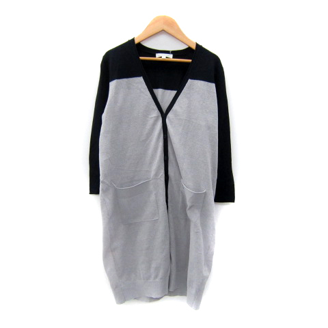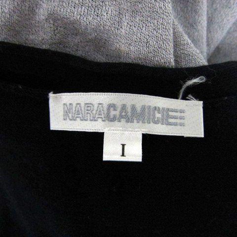 ナラカミーチェ NARA CAMICIE カーディガン ロング丈 Vネック 無地 切替 1 グレー 黒 ブラック /SY35 レディース
