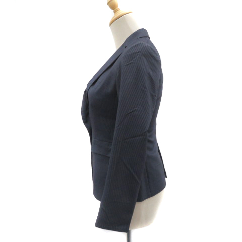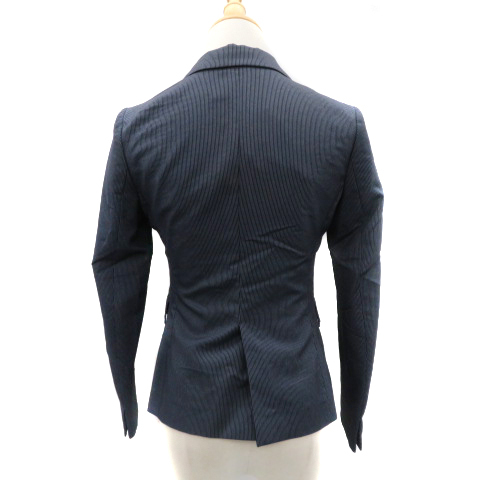 ユナイテッドアローズ UNITED ARROWS テーラードジャケット ミドル丈 シングルボタン ストライプ柄 34 XS 紺 ネイビー レディース