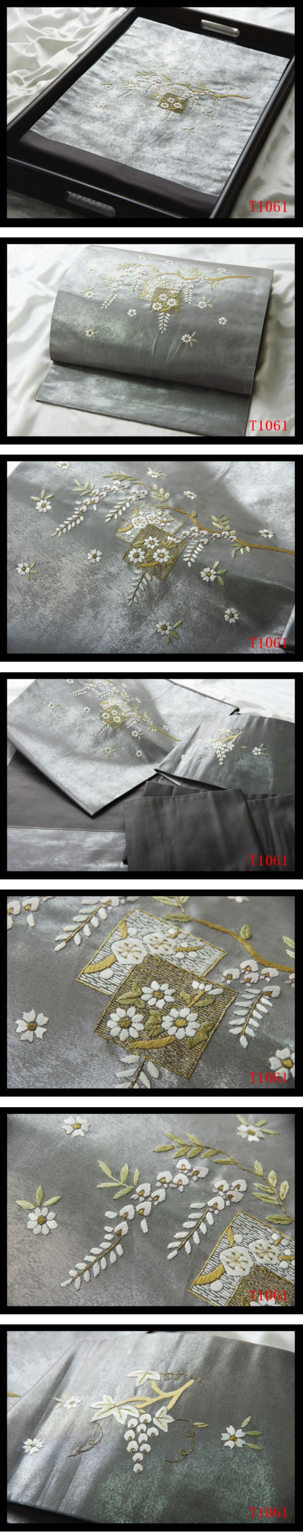 蔵【T1061】厳選逸品 刺繍 鉛色地 気品豊かに 正絹純金糸高級美術名古屋帯 ◇検◇簪着物袋帯和装小物帯締め